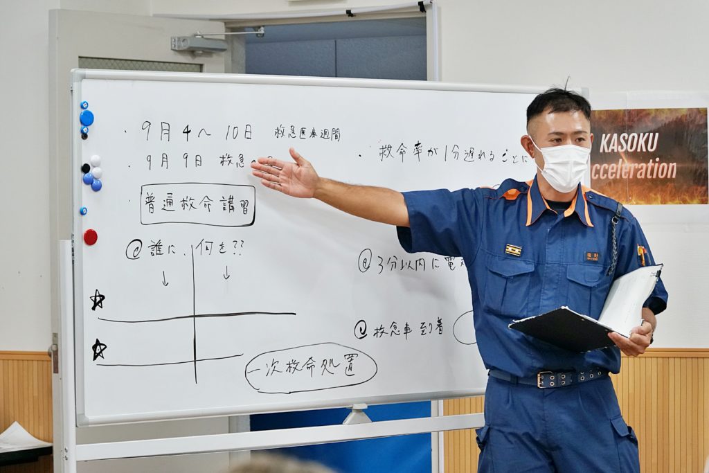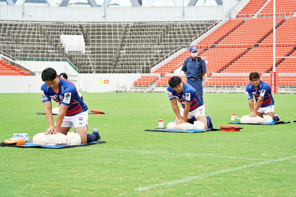 9月9日の「救急の日」、9月4日〜9月10日の「救急医療週間」に合わせ、9月8日(木)に東大阪市消防局中消防署の方に花園にお越しいただき、救命講習会を実施しました。