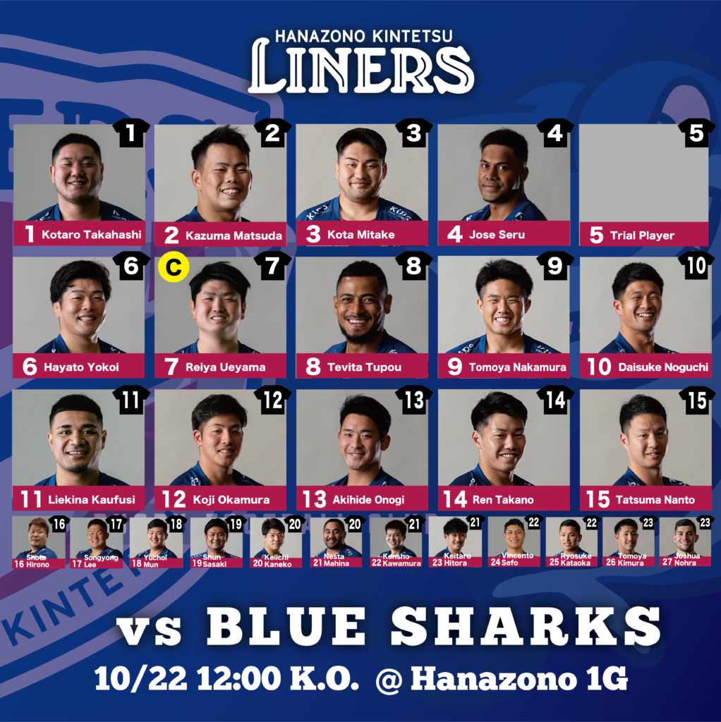来る10月22日(土)12時00分キックオフの清水建設江東ブルーシャークス戦のご案内をいたします。