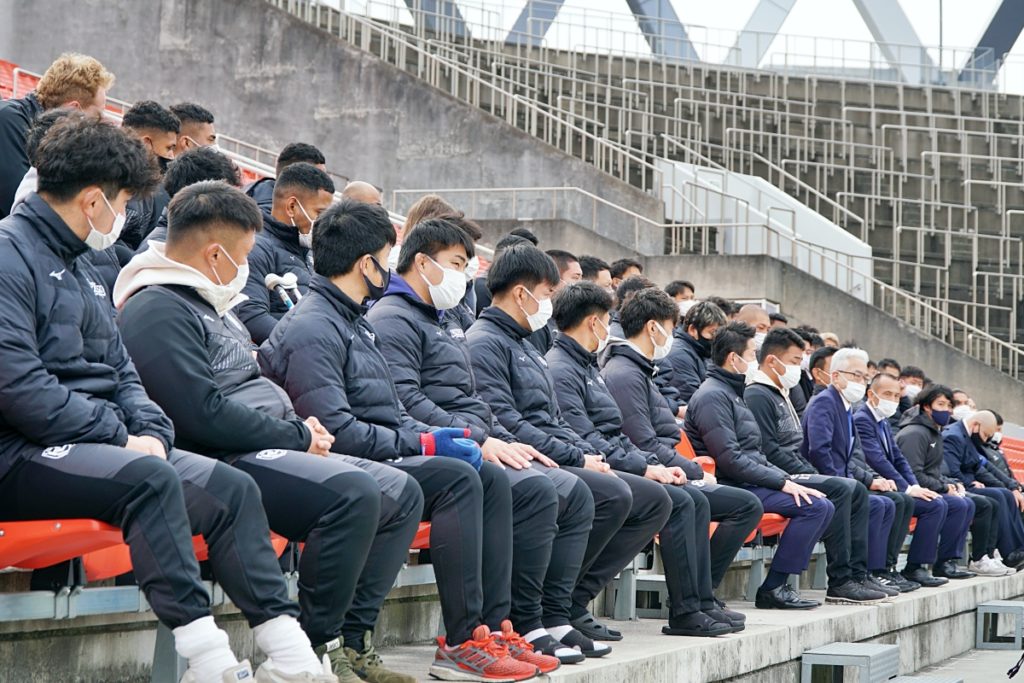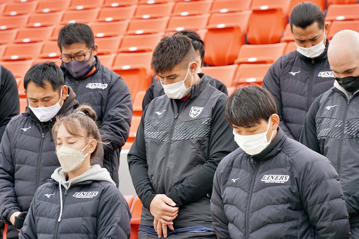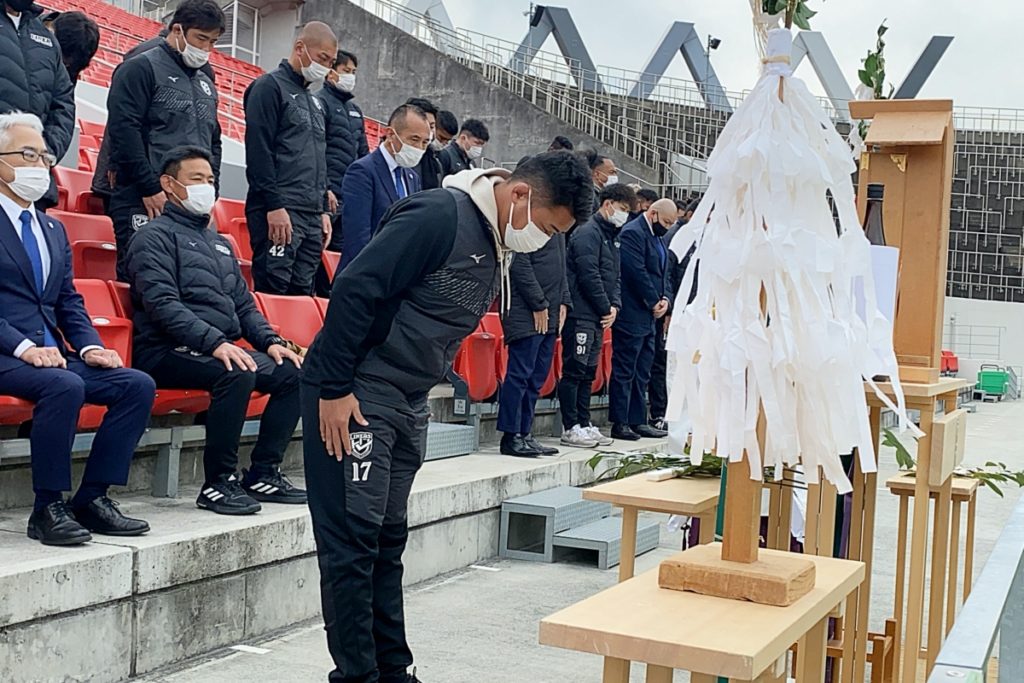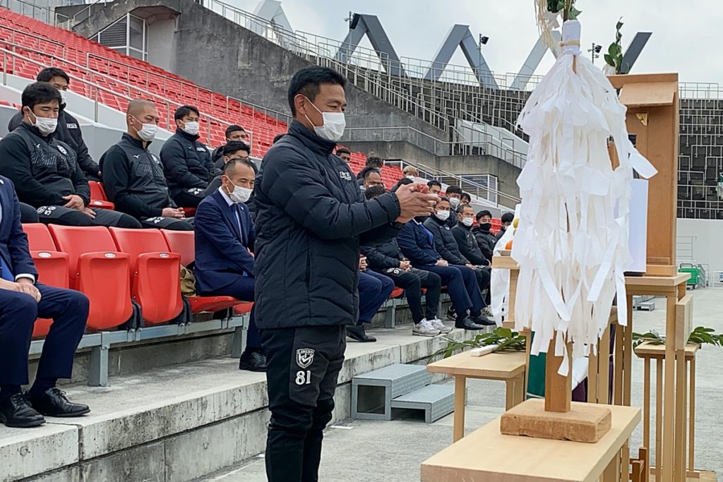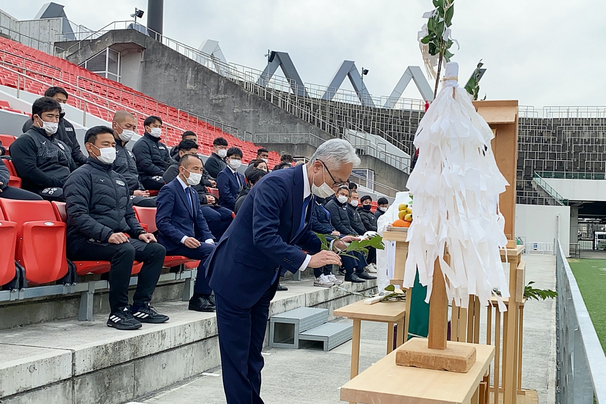 密を避けるため広さが取れる花園ラグビー場に、枚岡神社から神職にお越しいただき、ライナーズが試合をする第1グラウンドにて実施。