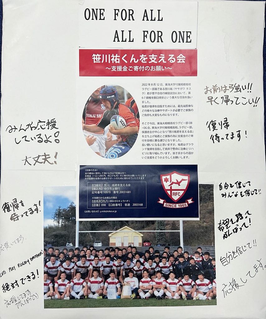 12月4日(日)に東大阪市花園ラグビー場で開催いたしました花園近鉄ライナーズ対静岡ブルーレヴズ戦「OSAKA SPORTS PROJECT MATCH 〜ROAD to 2025〜 大阪府民招待デー」で、笹川祐くんを支える会募金活動を実施いたしました。