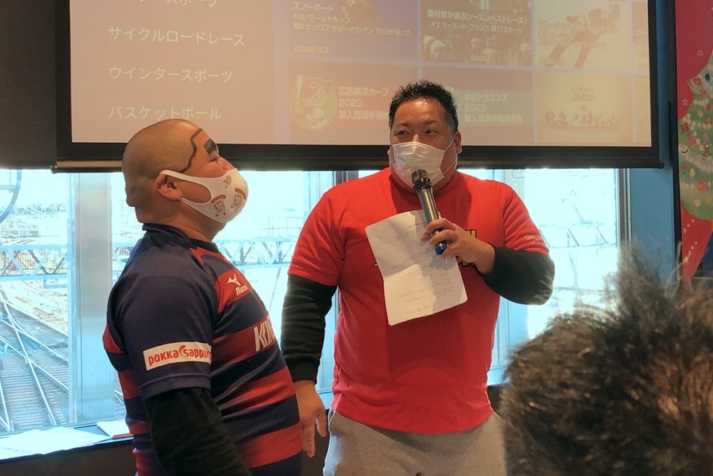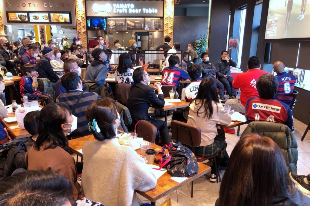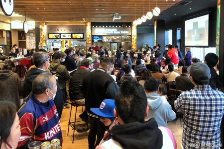 12月18日(日)、ジャパンラグビーリーグワンの開幕戦に合わせて、花園近鉄ライナーズ対NECグリーンロケッツ東葛のパブリックビューイングが西大寺Time’s Placeにて行われました。