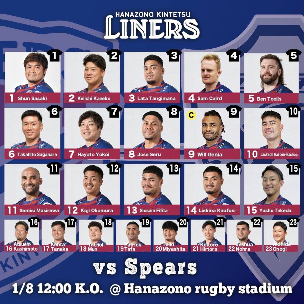 1月8日(日)12:00 K.O. vsクボタスピアーズ船橋・東京ベイ