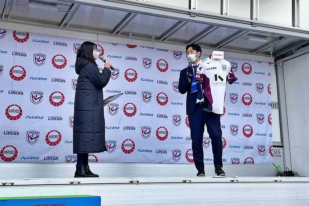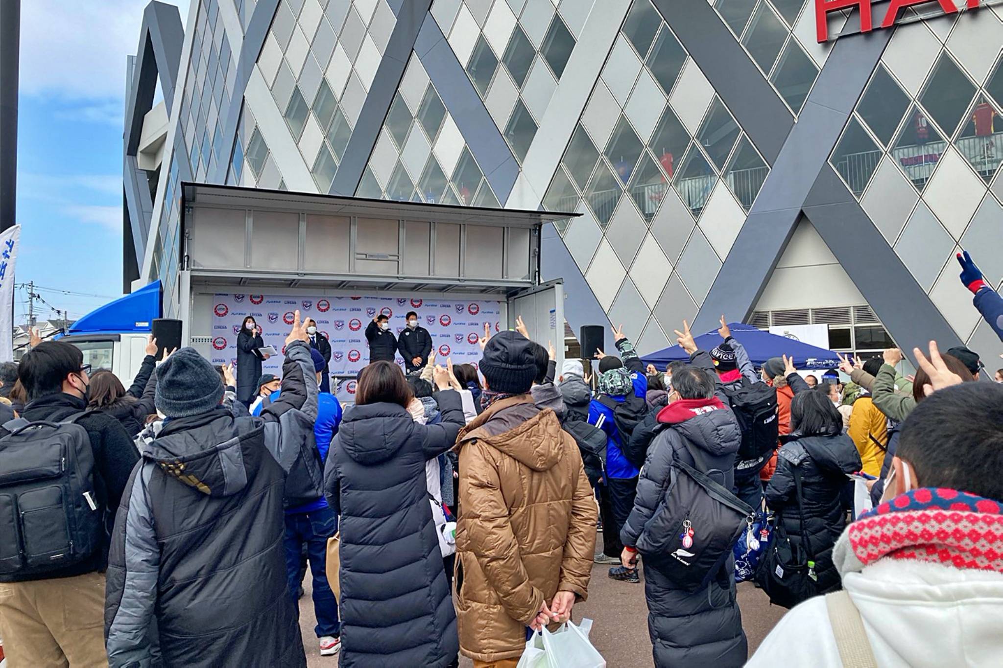 1月8日(日)、NTTジャパンラグビー リーグワン2022-23 Div.1 第3節 クボタスピアーズ船橋・東京ベイ戦に合わせ、東大阪市花園ラグビー場前の噴水広場にてライナーズ主催のイベント「花園ハッピーパーク」を開催しました。