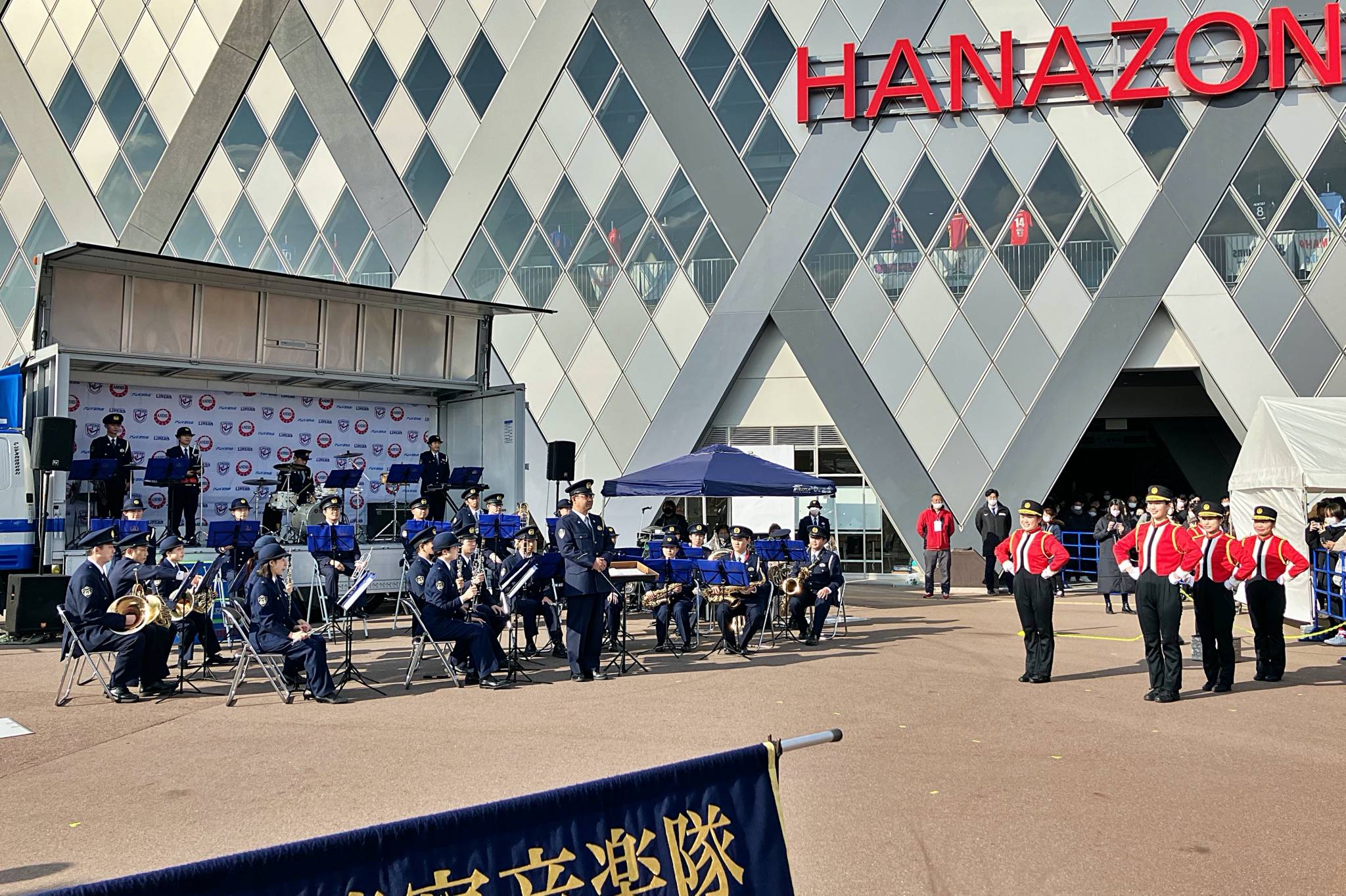 また試合後には、大阪府警察音楽隊による演奏やオフィシャルサポートソングを歌う「HAND DRIP」によるミニライブも。