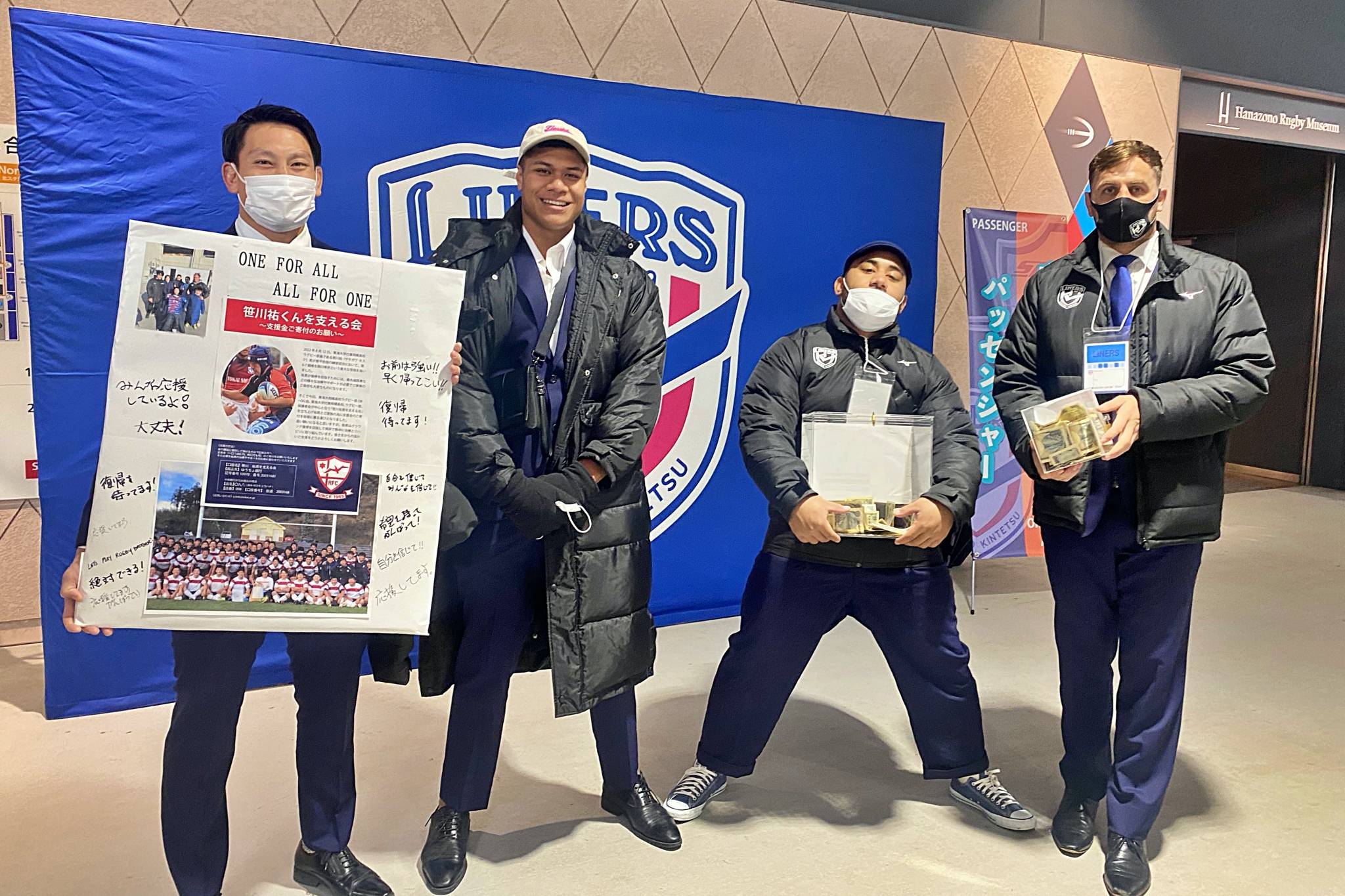ラグビー場内で笹川祐くんを支える会の募金活動、パッセンジャーフラッグへの応援メッセージ記入、未来ジャージコンテストの投票なども行いました。