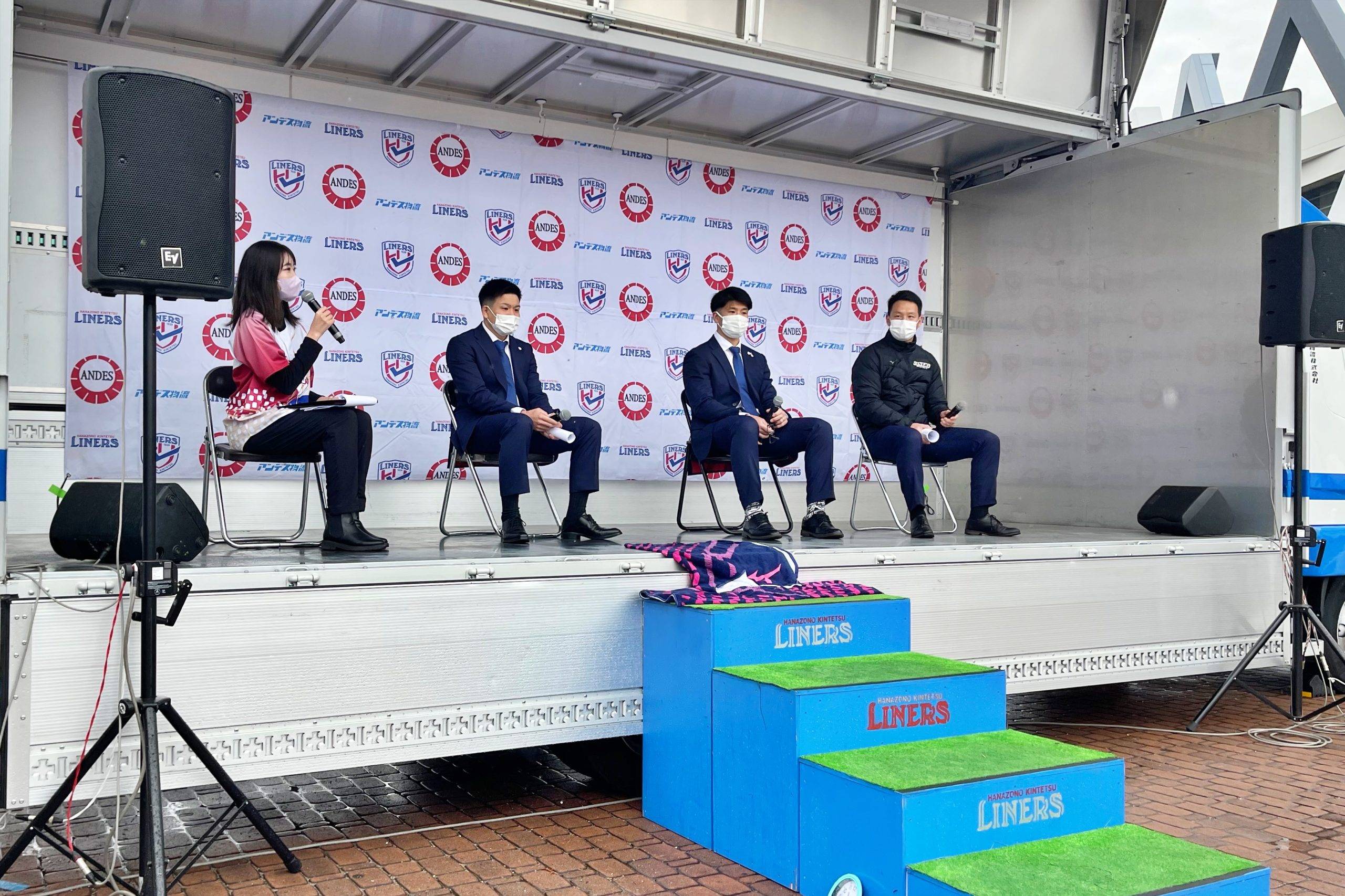 ステージは今回もプラチナパートナーであるアンデス物流様にご協力いただき、トラックステージにて開催しました。司会進行はタレントの谷山美香さん。