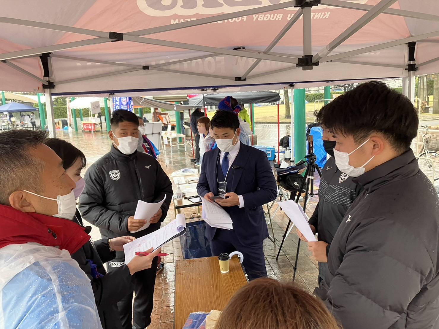 ラグビー場内では、笹川祐くんを支える会の募金活動、未来ジャージコンテストの投票、ライナーズ1,000円福引などを実施。ご協力いただいたみなさま、ありがとうございました。