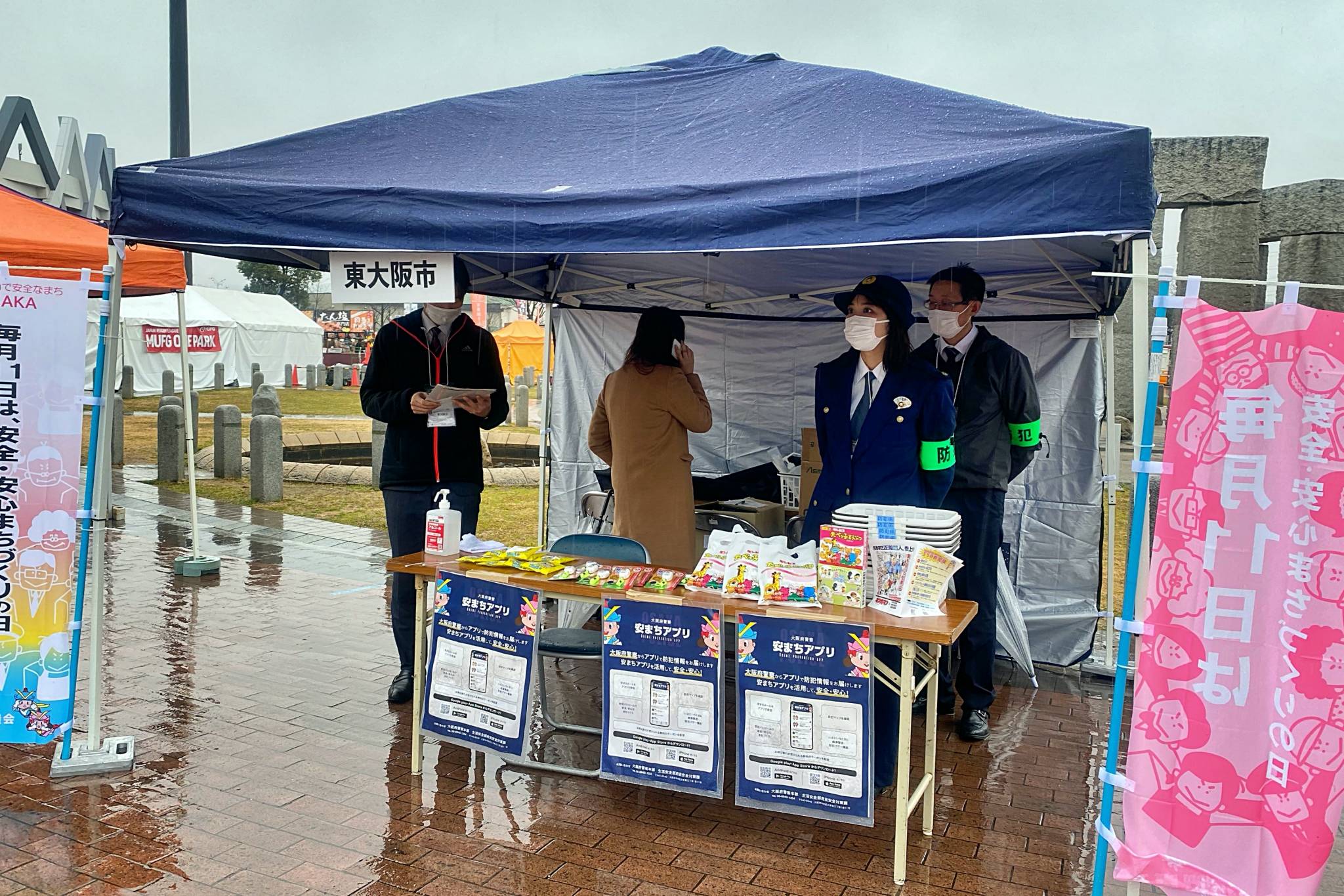 ライナーズがパートナーシップ協定を結ぶ公益財団法人ドナルド・マクドナルド・ハウス・チャリティーズ・ジャパンのブースでは、募金活動とキックターゲットを実施。東大阪市ブースでは大阪府警とともに「特殊詐欺被害および女性・こどもに対する性犯罪被害防止キャンペーン」のPR、啓発品の配布と被害防止の呼びかけを行っていただきました。
