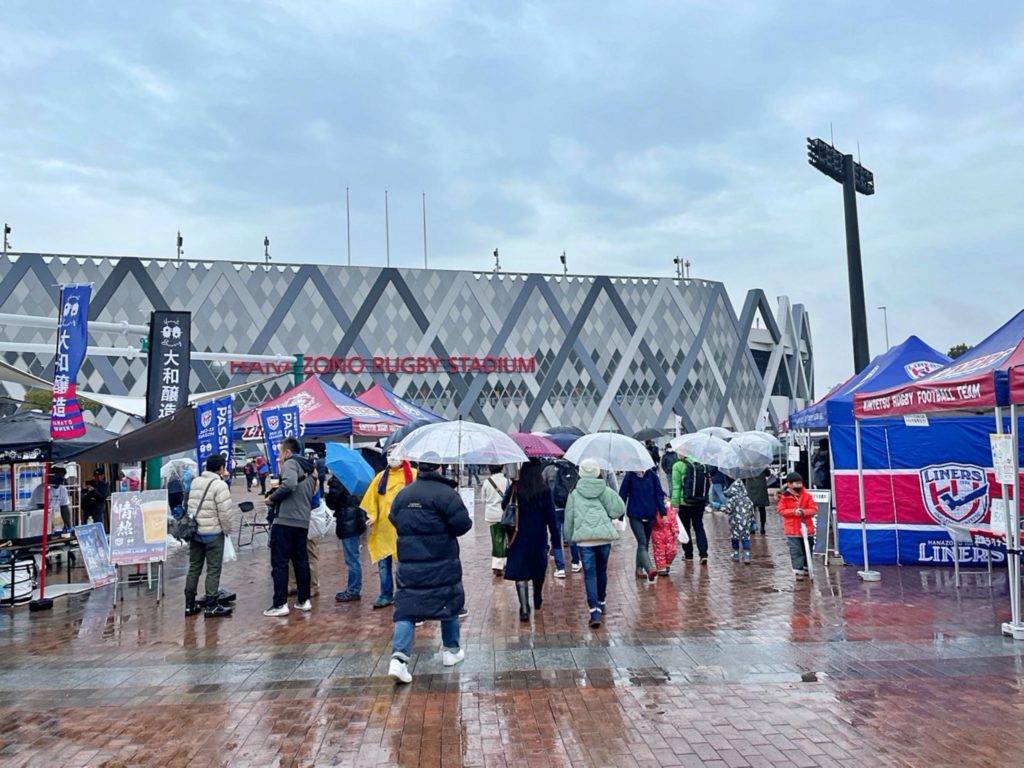 1月14日(土)、NTTジャパンラグビー リーグワン2022-23 Div.1 第4節 横浜キヤノンイーグルス戦に合わせ、東大阪市花園ラグビー場前の噴水広場にてライナーズ主催のイベント「花園ハッピーパーク」を開催しました。