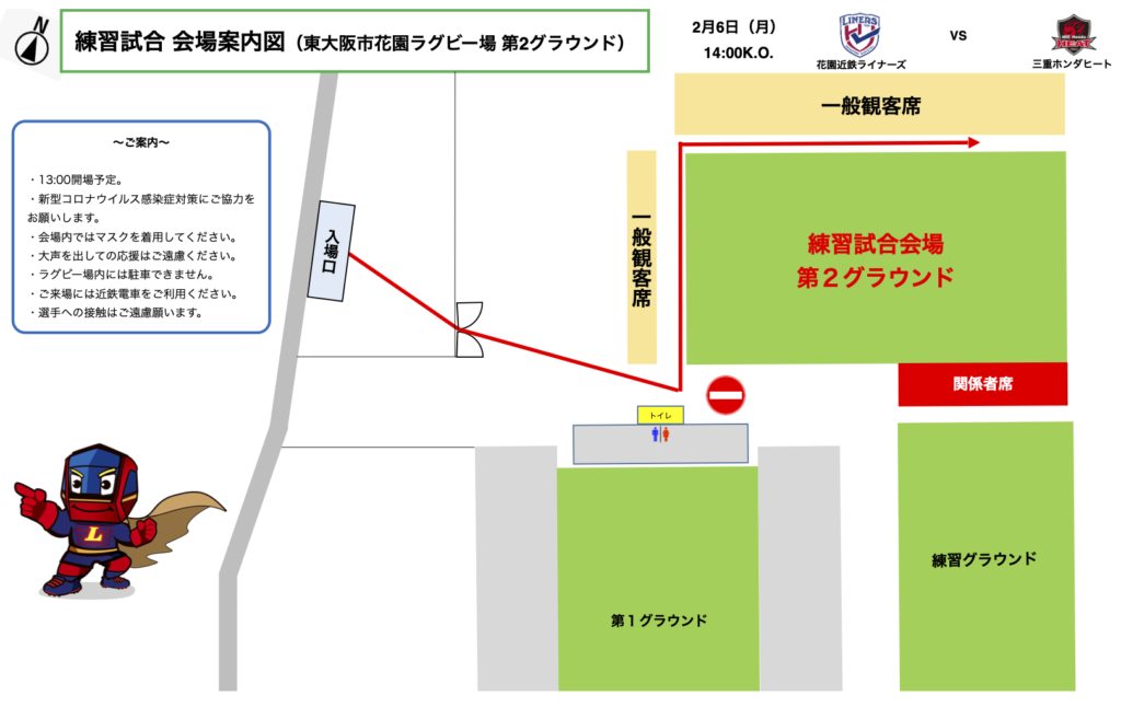 グラウンドへの動線は以下の画像をご確認ください。
