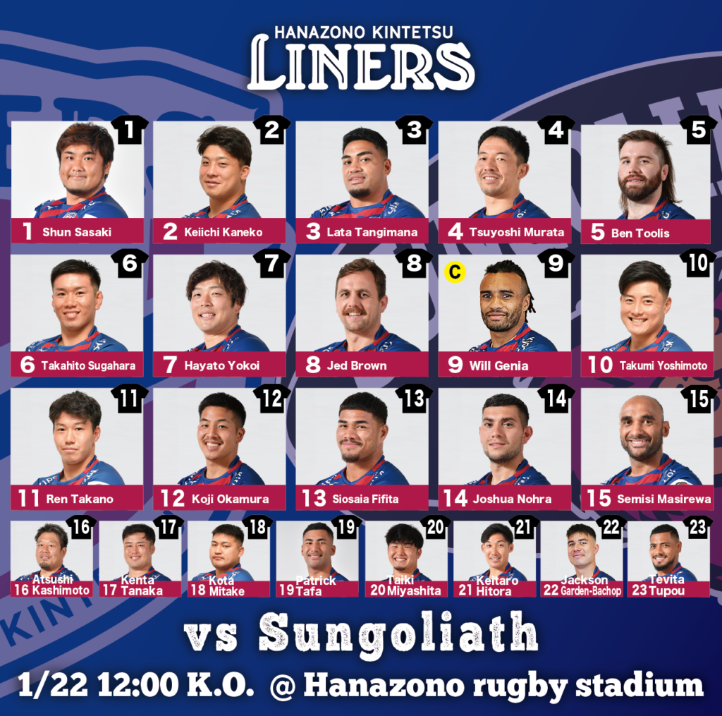 1月22日(日)12:00 K.O. vs東京サントリーサンゴリアス