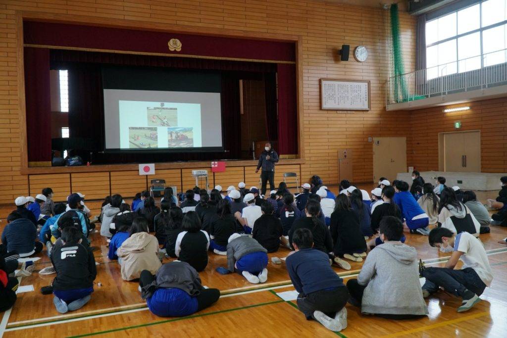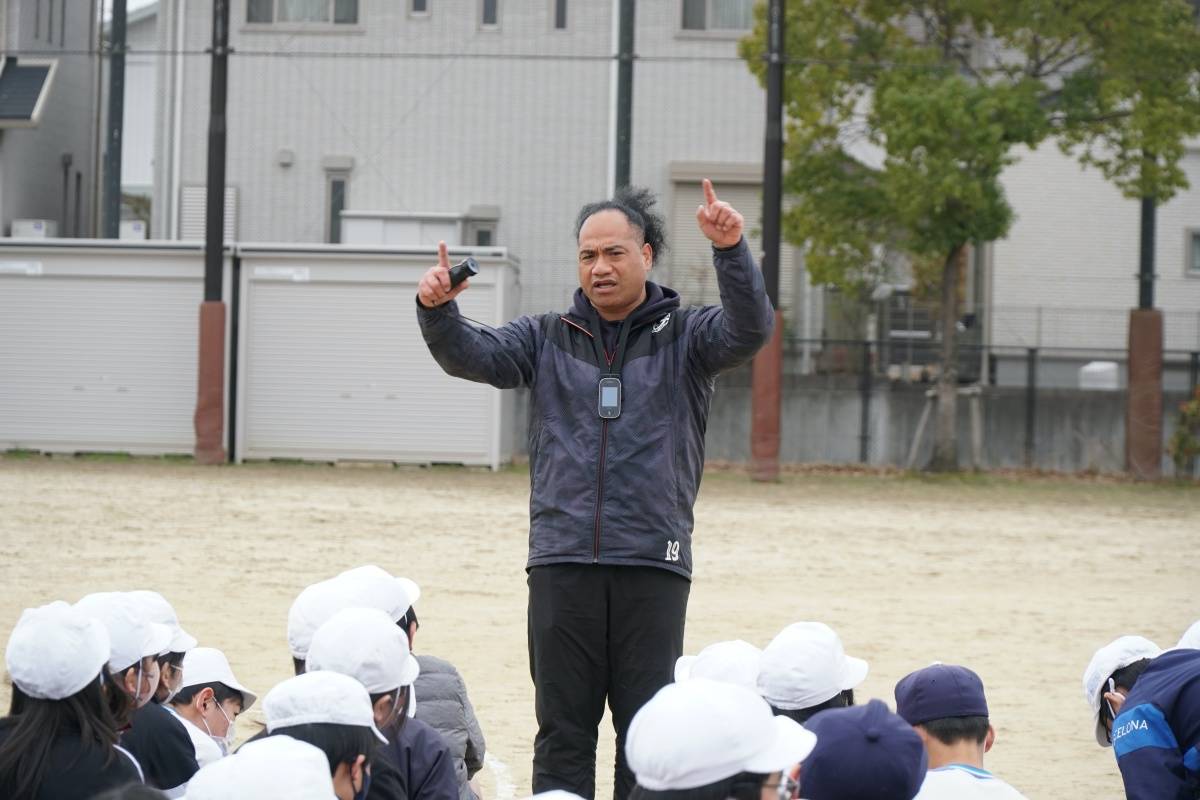 2月3日(金)草津市立渋川小学校にて、タウファ統悦普及担当が6年生に向けて講話とラグビー体験を実施しました。