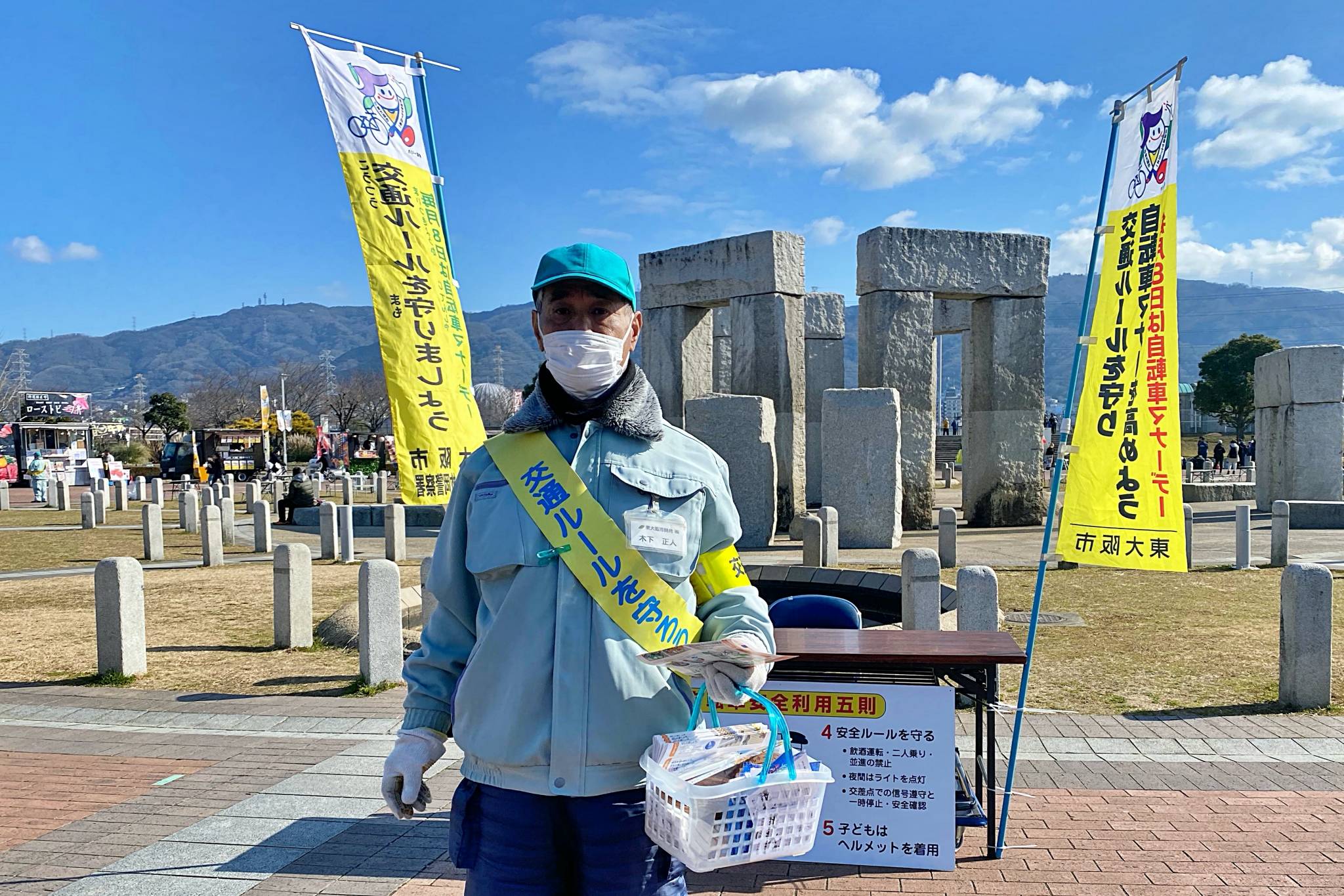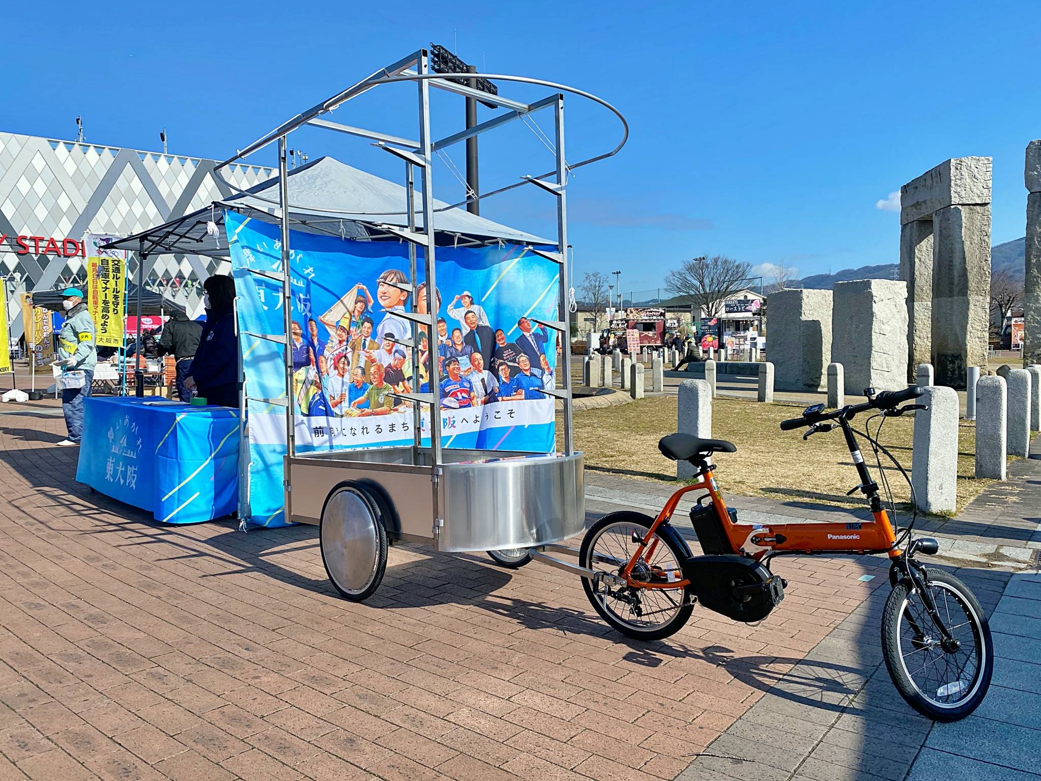 東大阪市のブースでは自転車のマナーアップキャンペーンの啓発を、ライナーズブースでは1,000円福引きのほか神セブンに選ばれた選手のサイン入りポストカードがもらえるバウムクーヘン販売などを行いました。