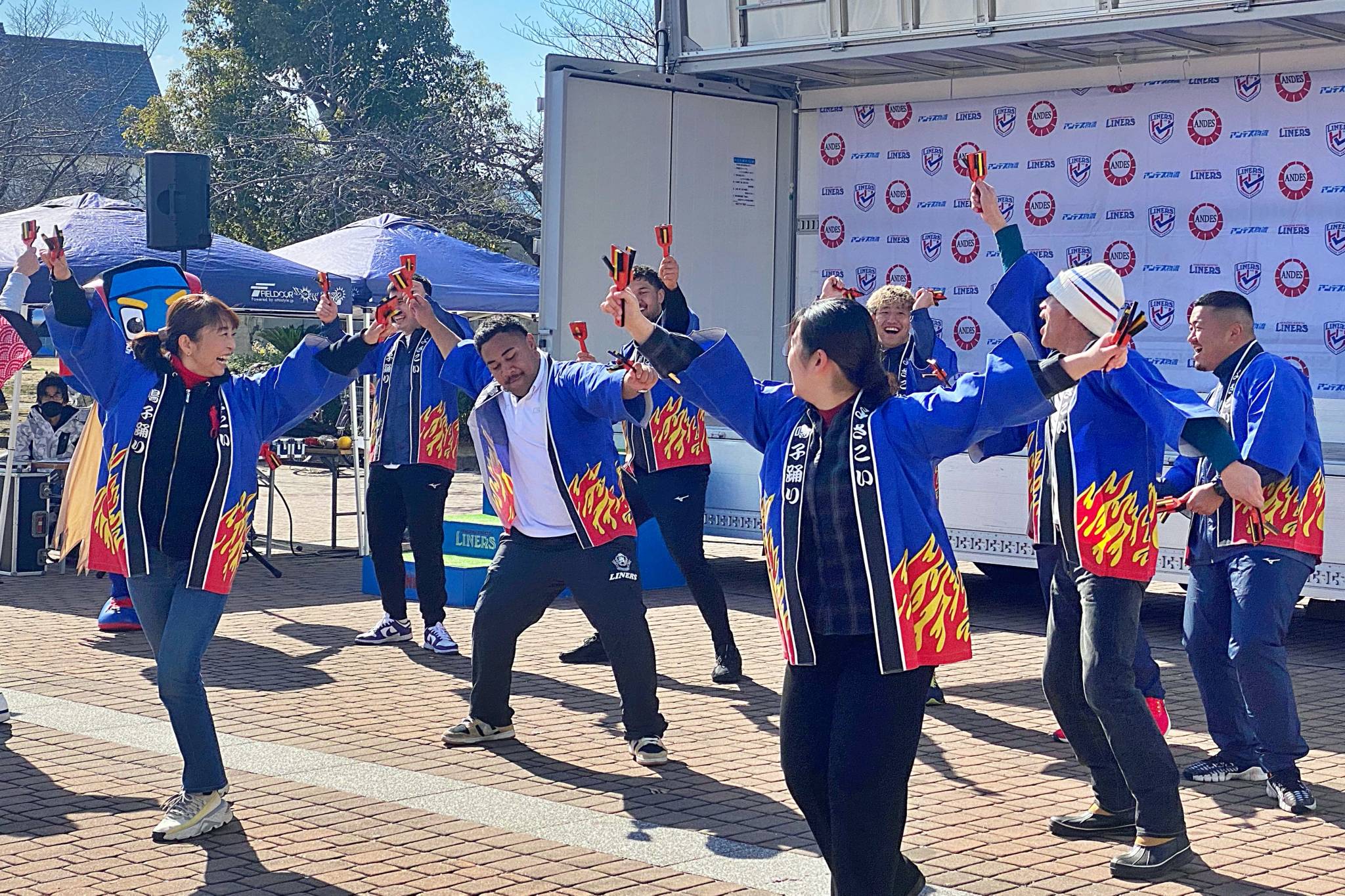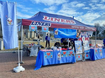 2月5日(日)、NTTジャパンラグビー リーグワン2022-23 Div.1第7節 静岡ブルーレヴズ戦に合わせ、東大阪市花園ラグビー場前の噴水広場にてライナーズ主催のイベント「花園ハッピーパーク」を開催しました。
