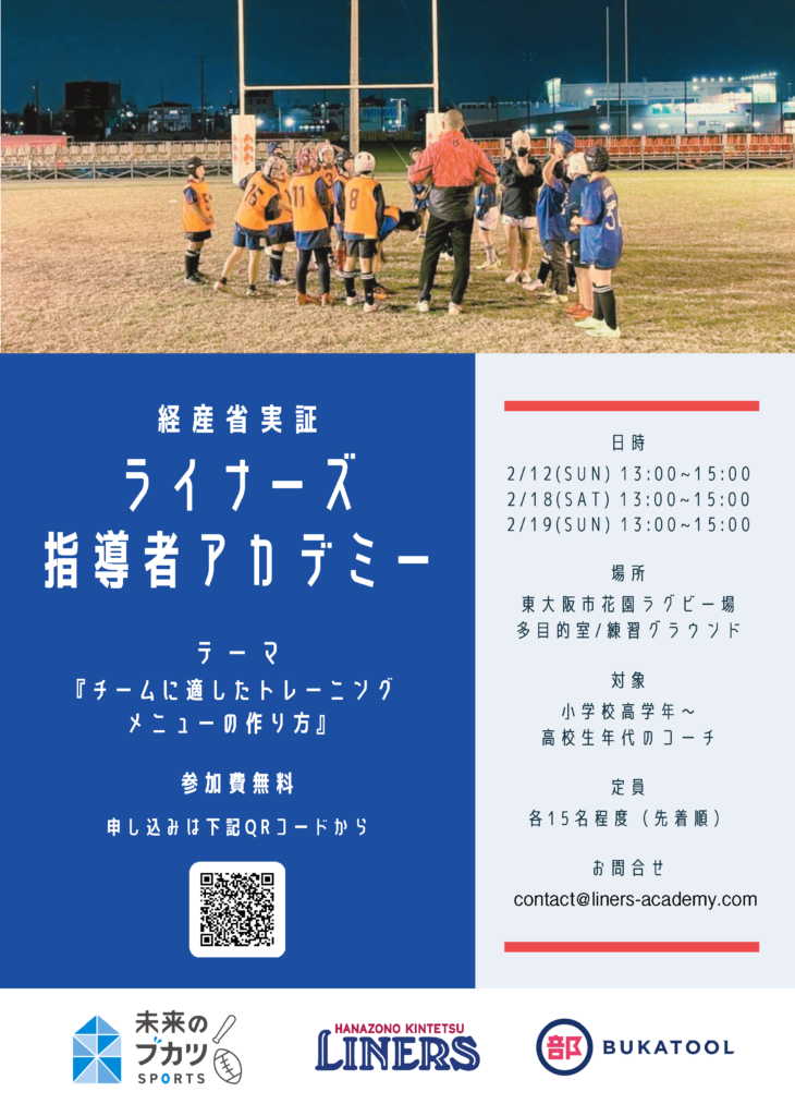 経済産業省の「未来のブカツビジョン」における実証事業の一環として、小学校高学年〜高校生年代の指導者を対象としたコーチングセミナーを実施いたします。