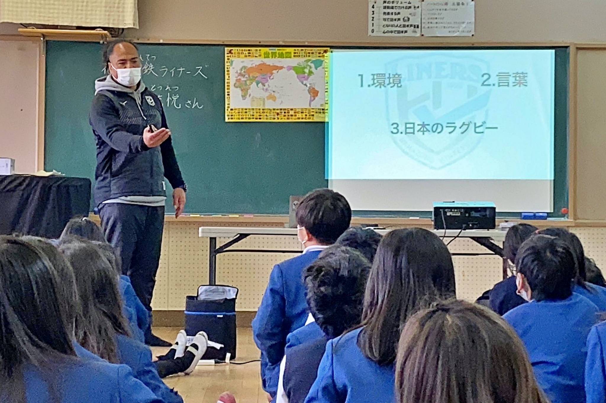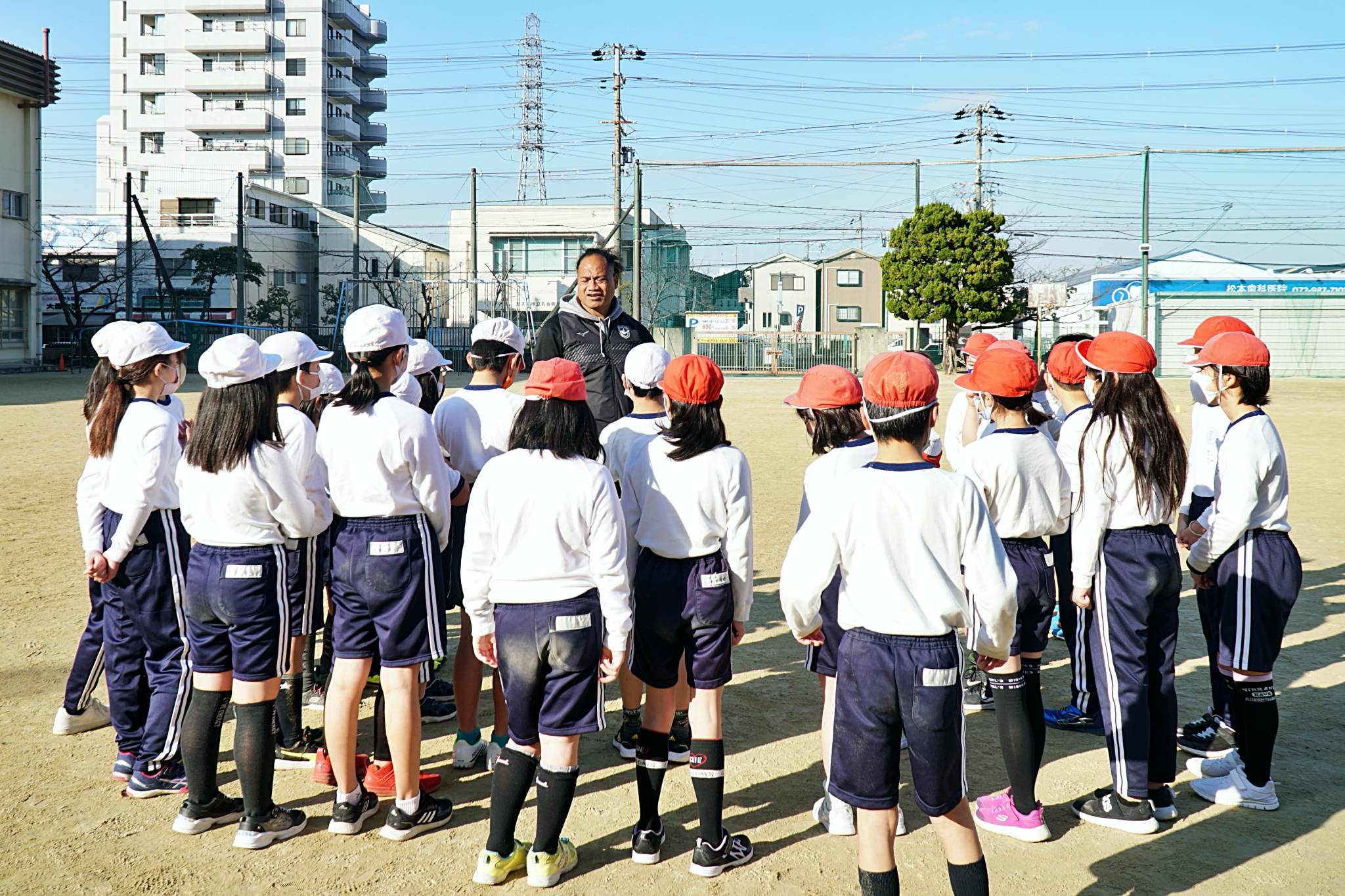 1月20日(金)、「花園近鉄ライナーズスクラム事業」の一環で、東大阪市立孔舎衙(くさか)小学校の4年生に向けてラグビー体験および講話を実施しました。