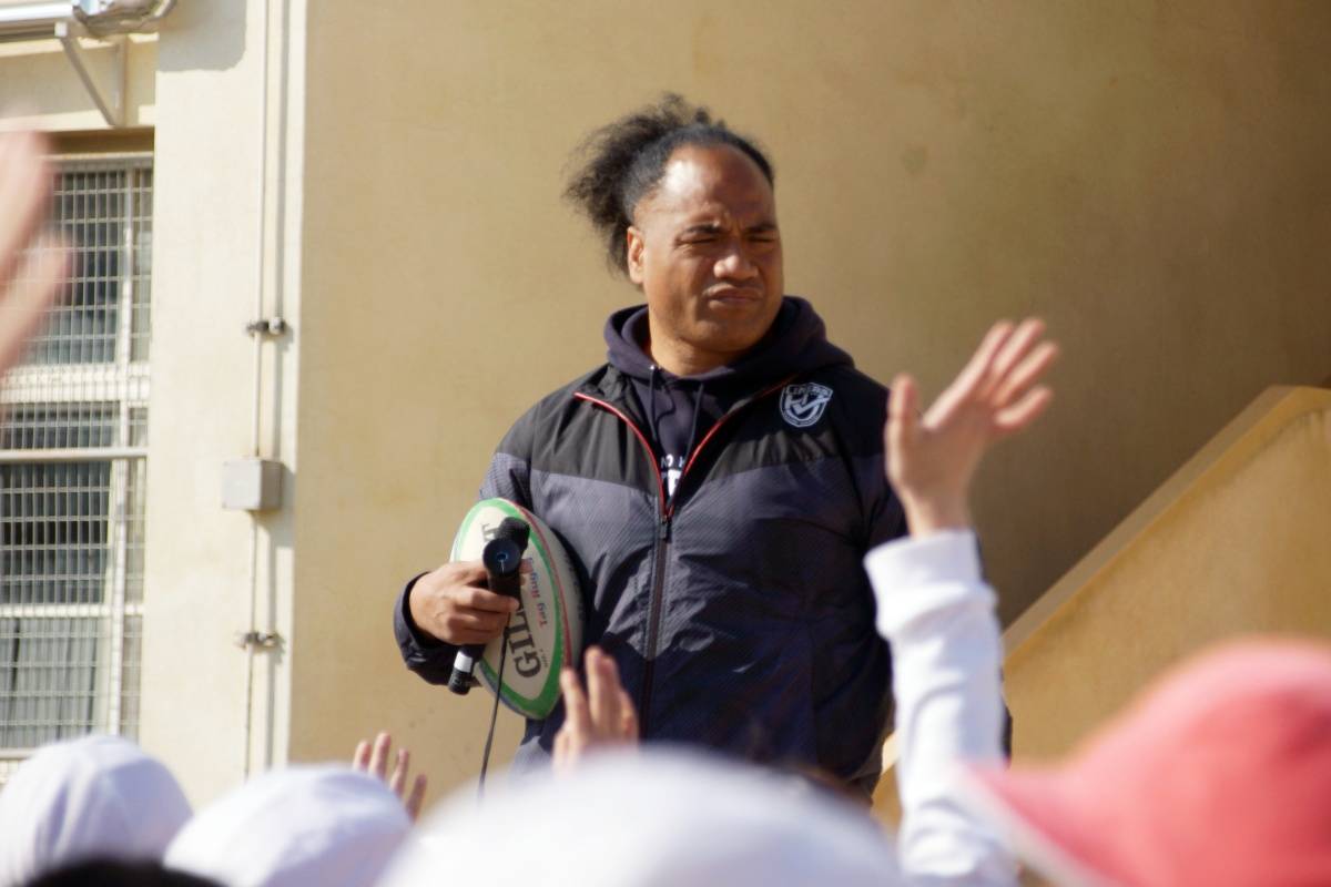 2月9日(木)、和泉市立北池田小学校にて、タウファ統悦普及担当がラグビー体験を実施しました。