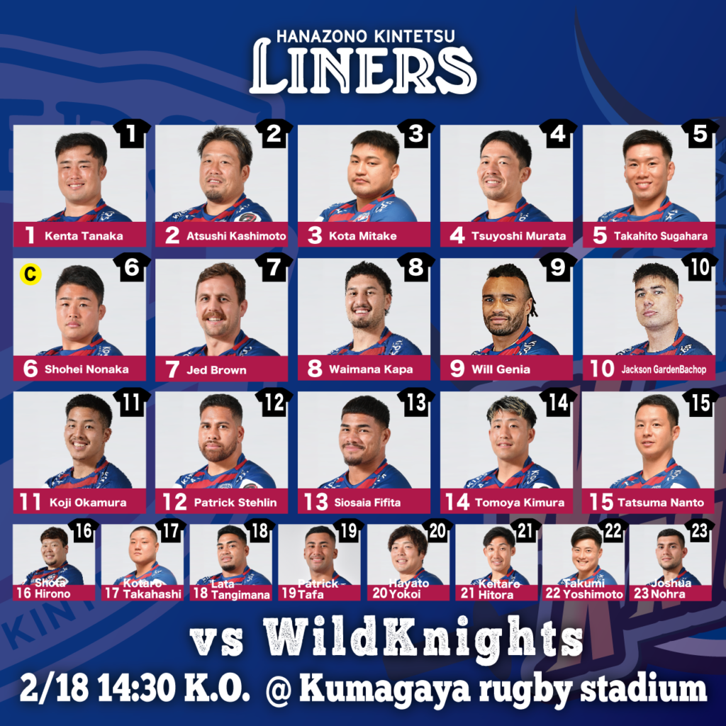 2月18日(土)14:30 K.O. vs埼玉パナソニックワイルドナイツ