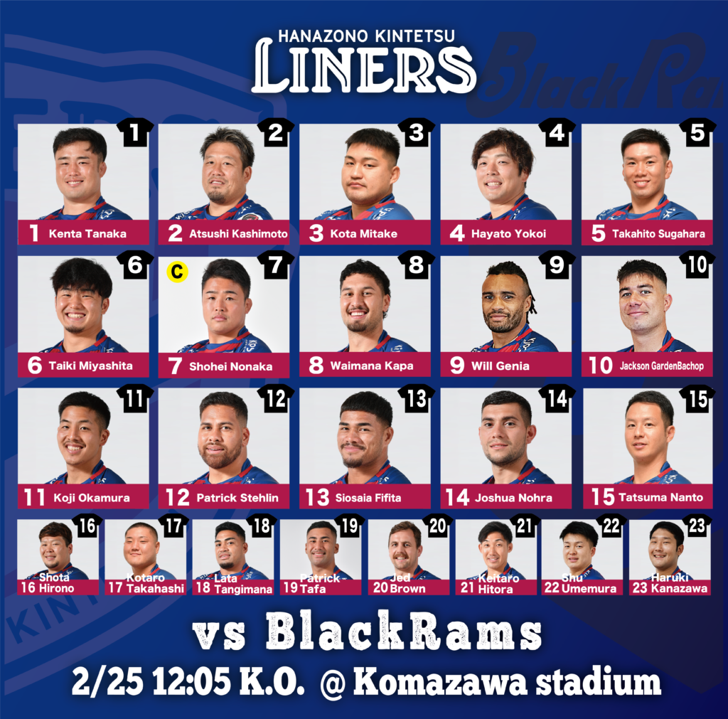 来る2月25日(土)12時05分キックオフにて開催します、JAPAN RUGBY LEAGUE ONE 2022-23 Division1第9節・リコーブラックラムズ東京戦のご案内をいたします。