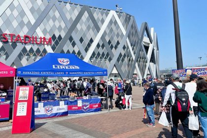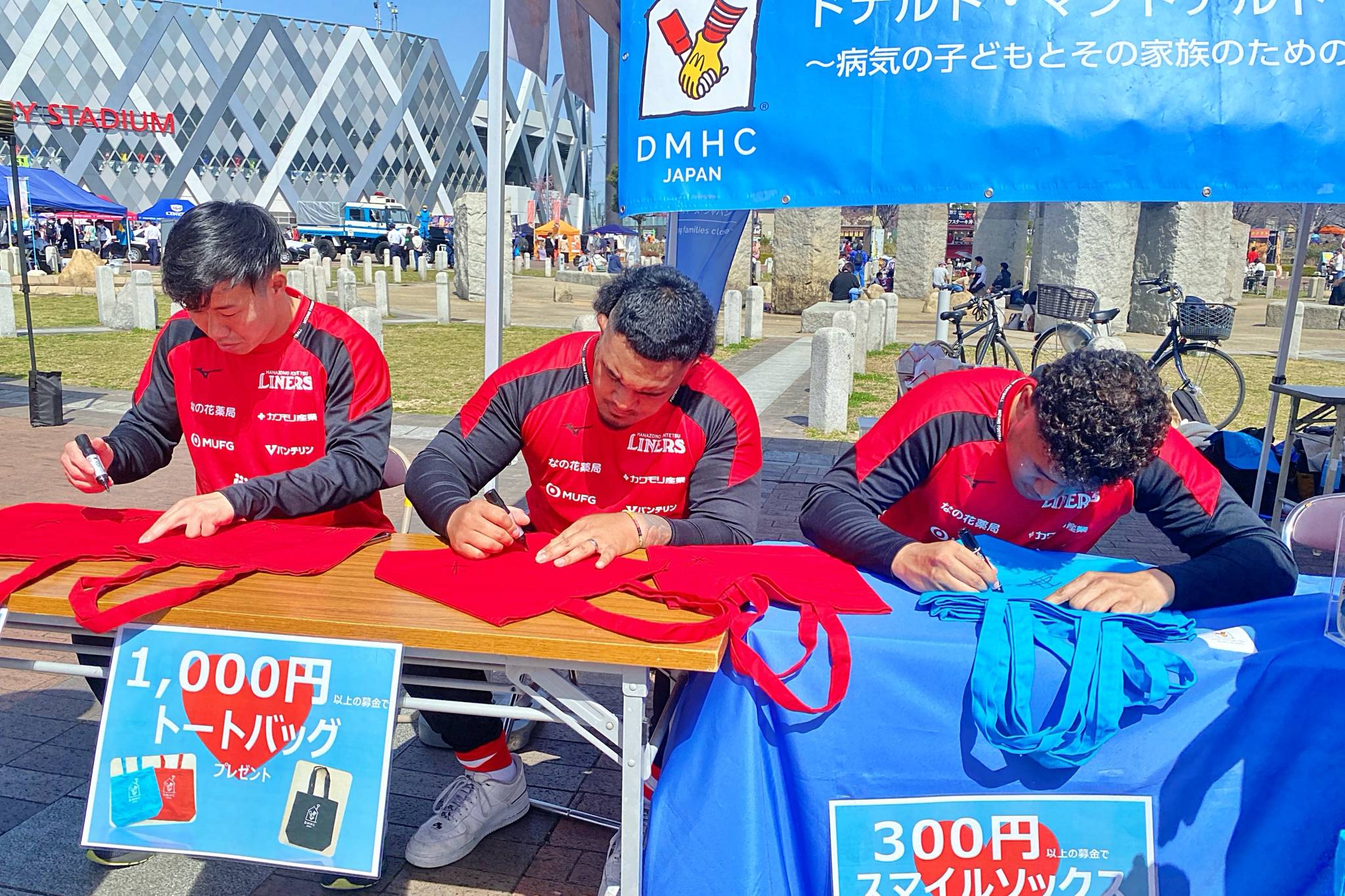 3月11日(土)、NTTジャパンラグビー リーグワン2022-23 Div.1第11節 トヨタヴェルブリッツ戦に合わせ、東大阪市花園ラグビー場前の噴水広場にてライナーズ主催のイベント「花園ハッピーパーク」を開催しました。