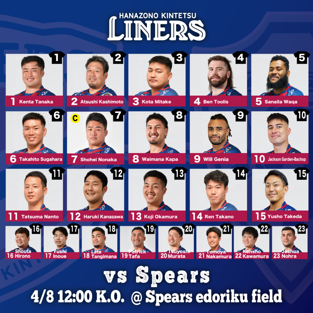 4月8日(土)12:00 K.O. vsクボタスピアーズ船橋・東京ベイ