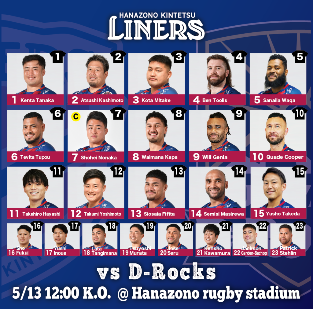 来る5月13日(土)、JAPAN RUGBY LEAGUE ONE 2022-23 D1/D2入替戦第2戦・浦安D-Rocks戦のご案内をいたします。