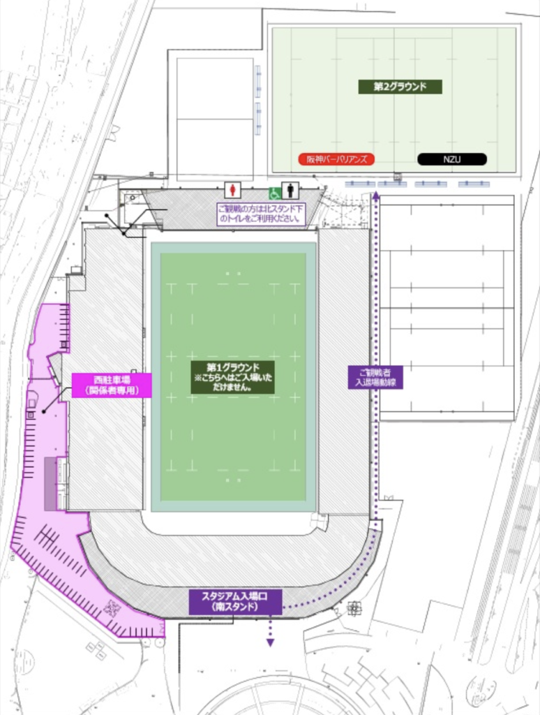 ・当日、観戦にお越しの方は下記の図をご参考のうえグラウンドまでお越しください。