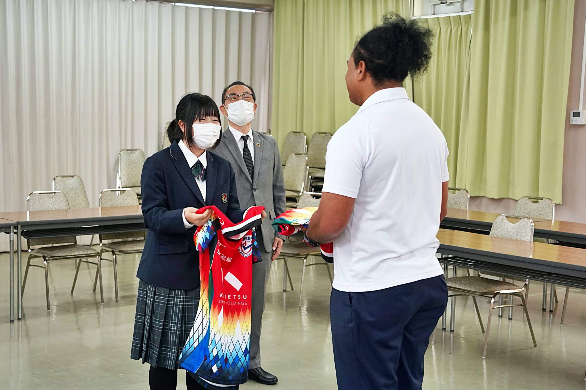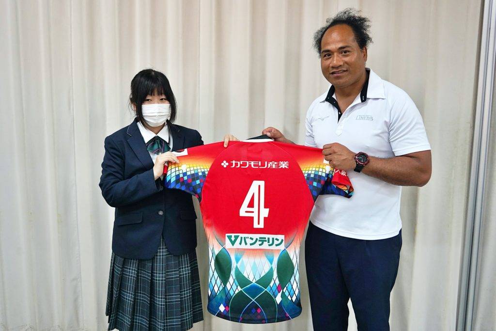 5月18日(木)、グランプリに輝いたジャージをデザインしてくださった前田彩吹さんを訪問し、3rdジャージを贈呈しました。