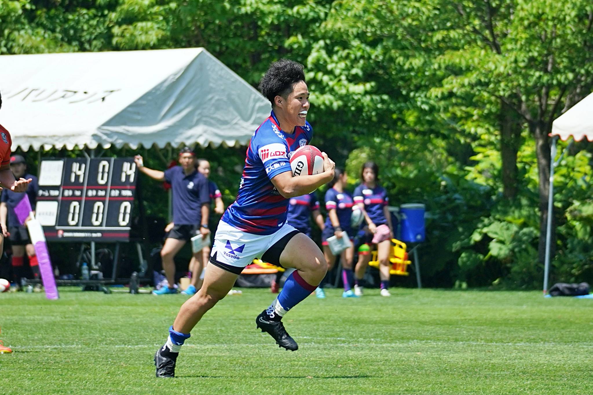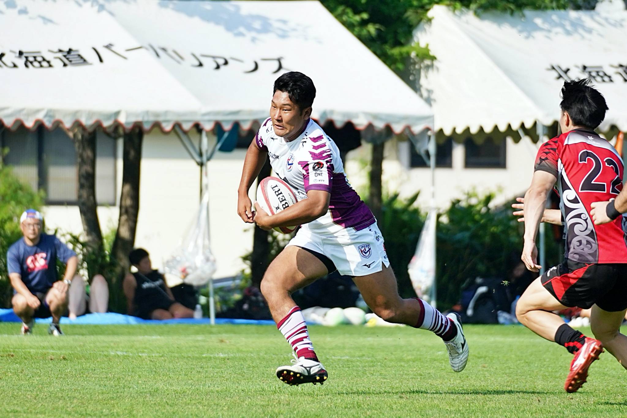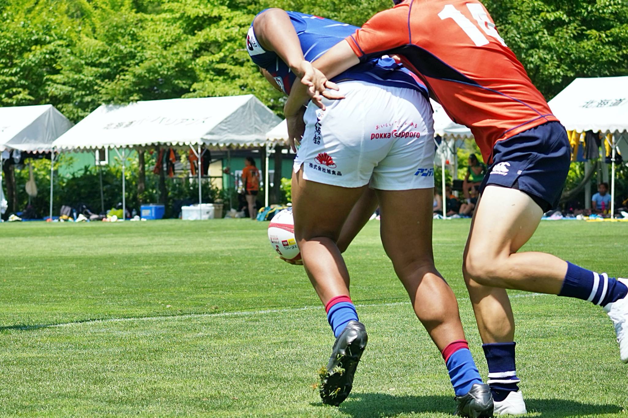 2日目のトーナメント1回戦はセブンズ北海道選抜と対戦し、47-5で勝利。準決勝の北海道バーバリアンズ戦へと駒を進めました。