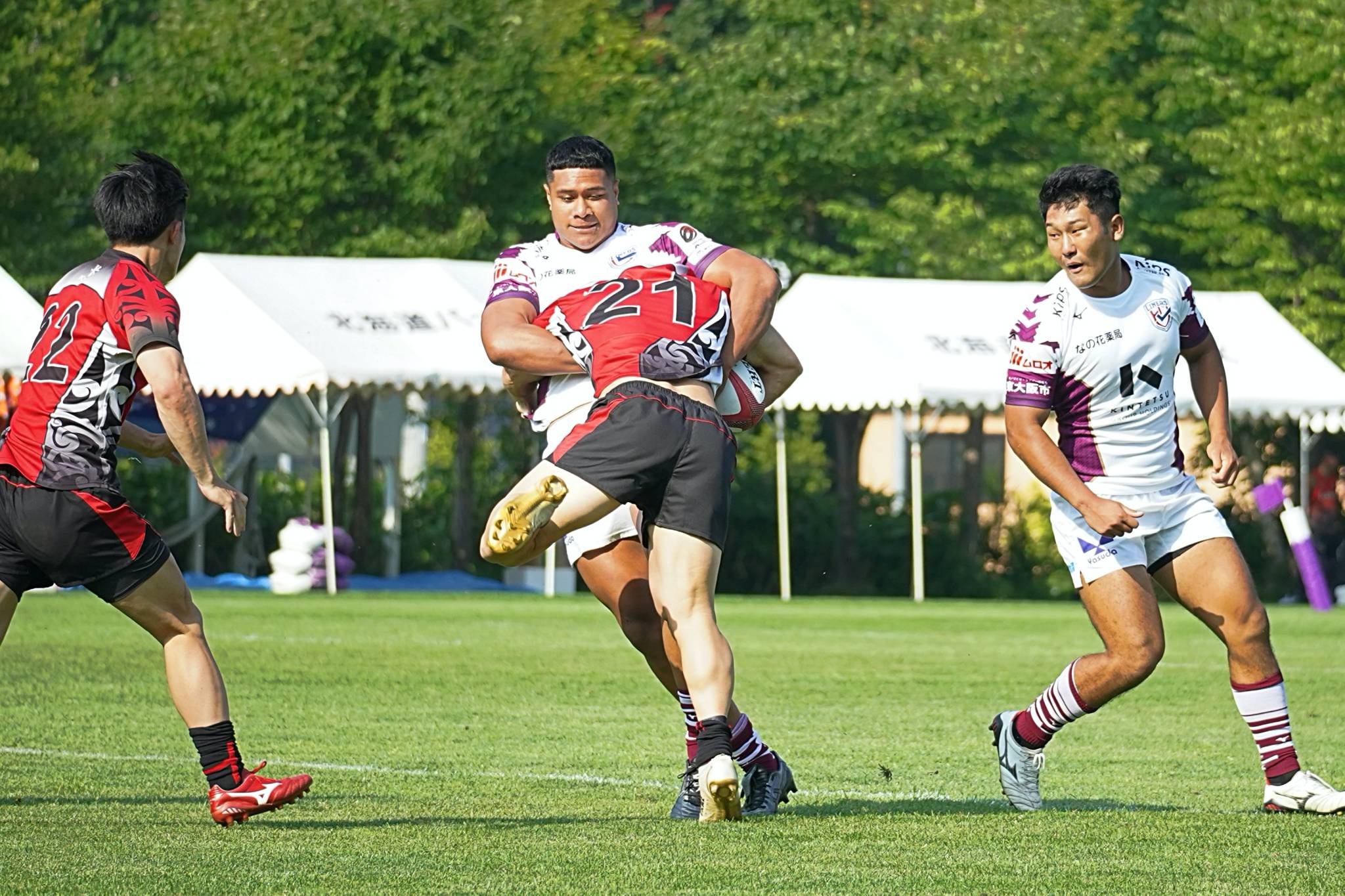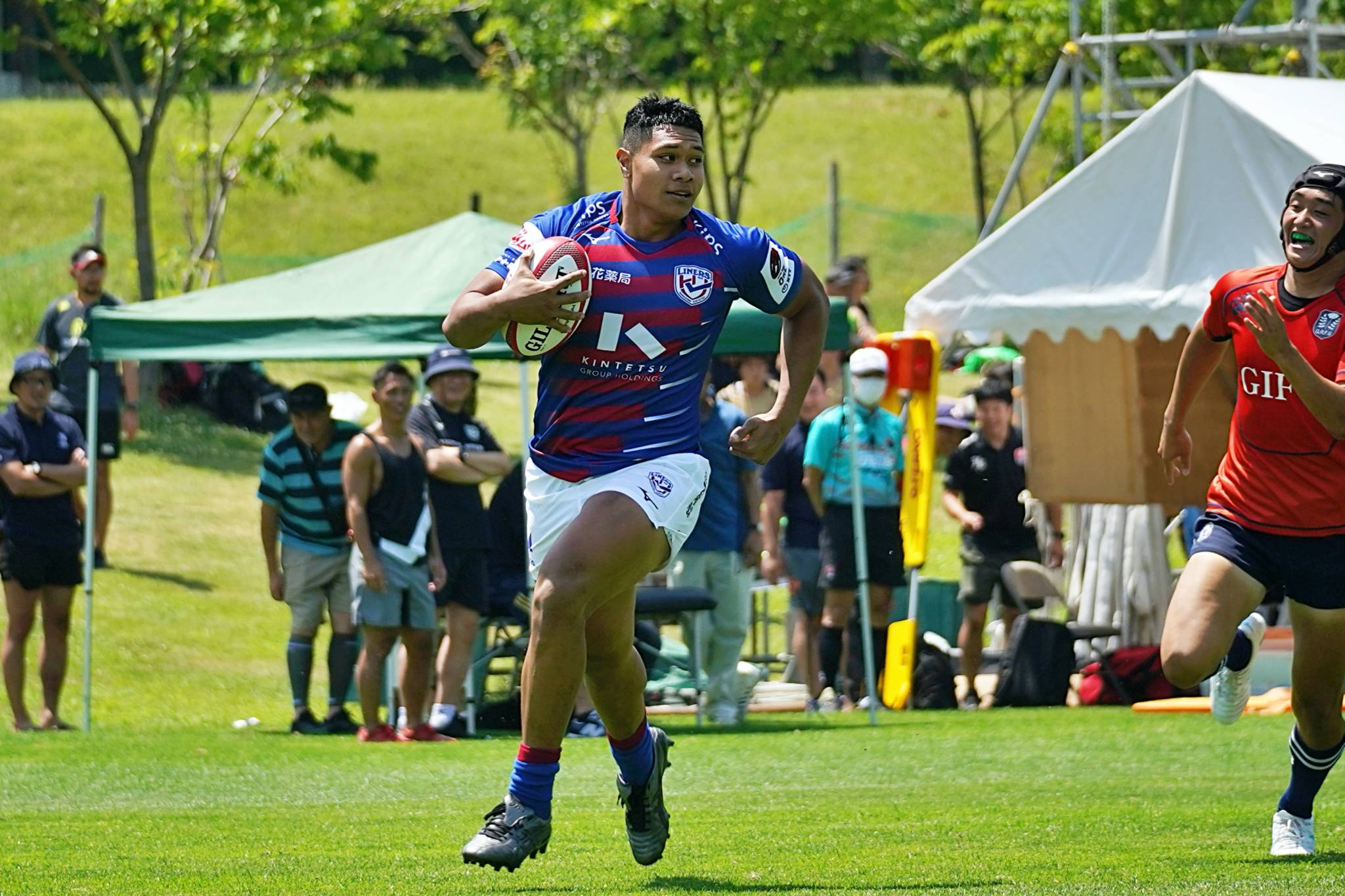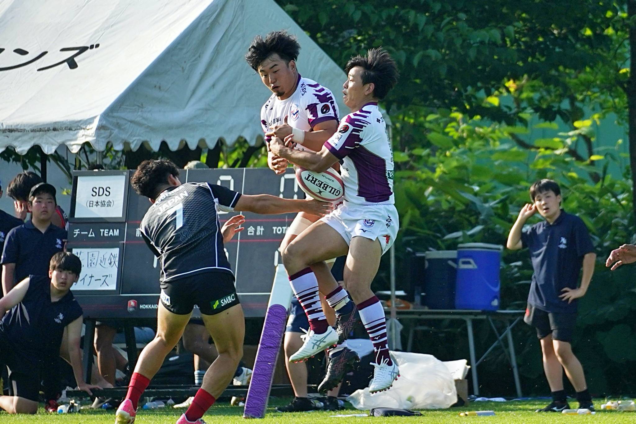 2日目のトーナメント1回戦はセブンズ北海道選抜と対戦し、47-5で勝利。準決勝の北海道バーバリアンズ戦へと駒を進めました。