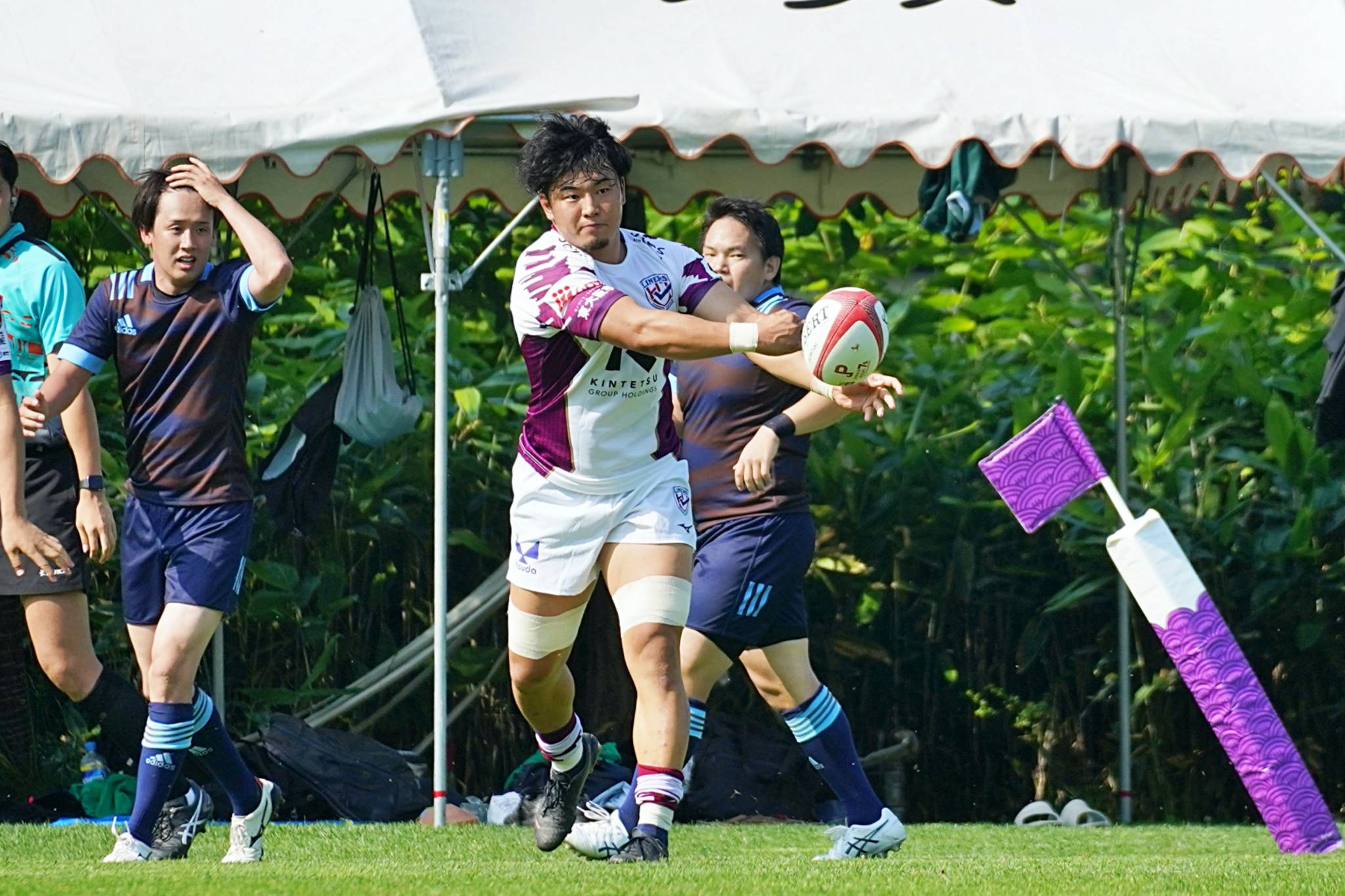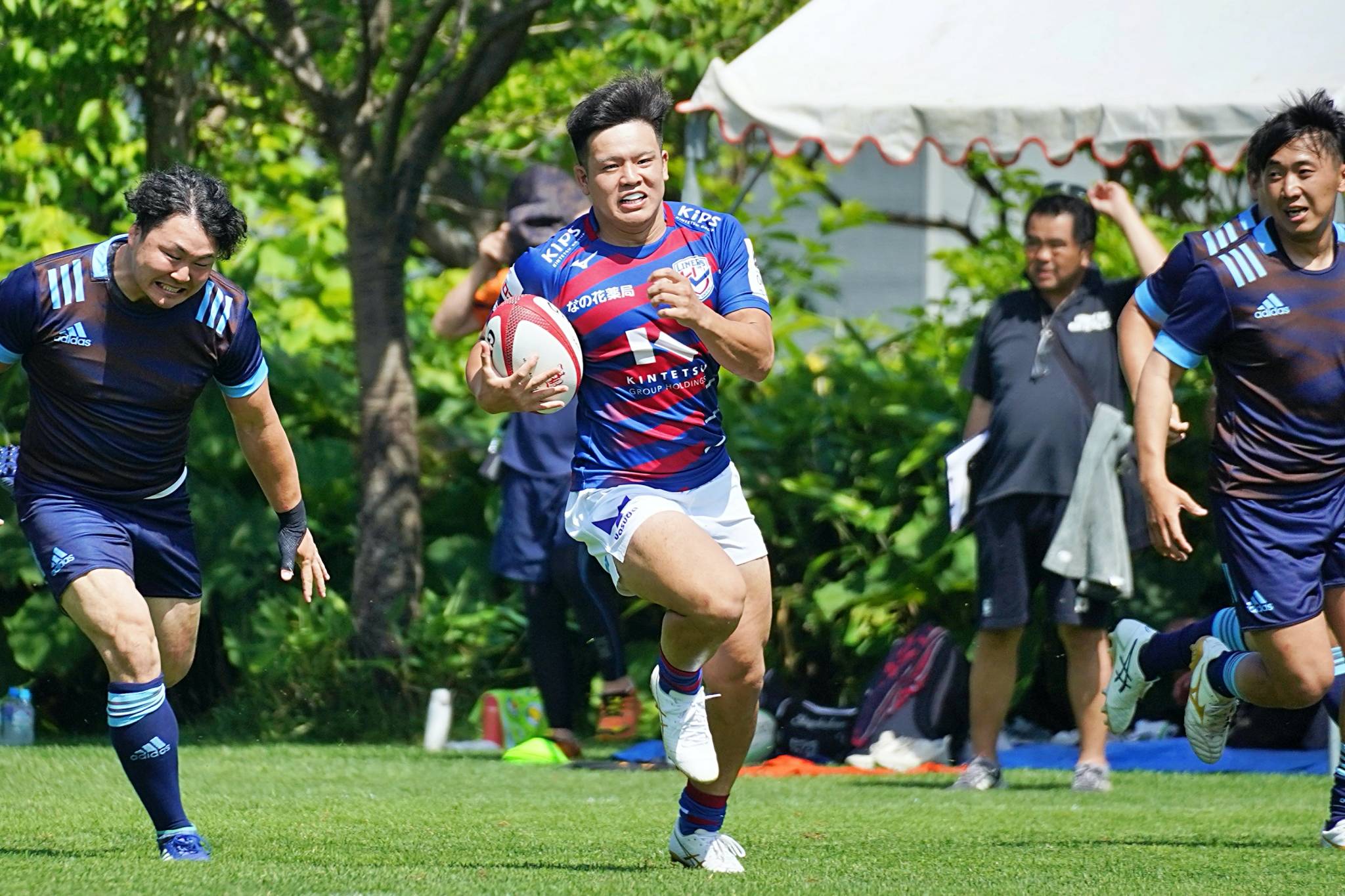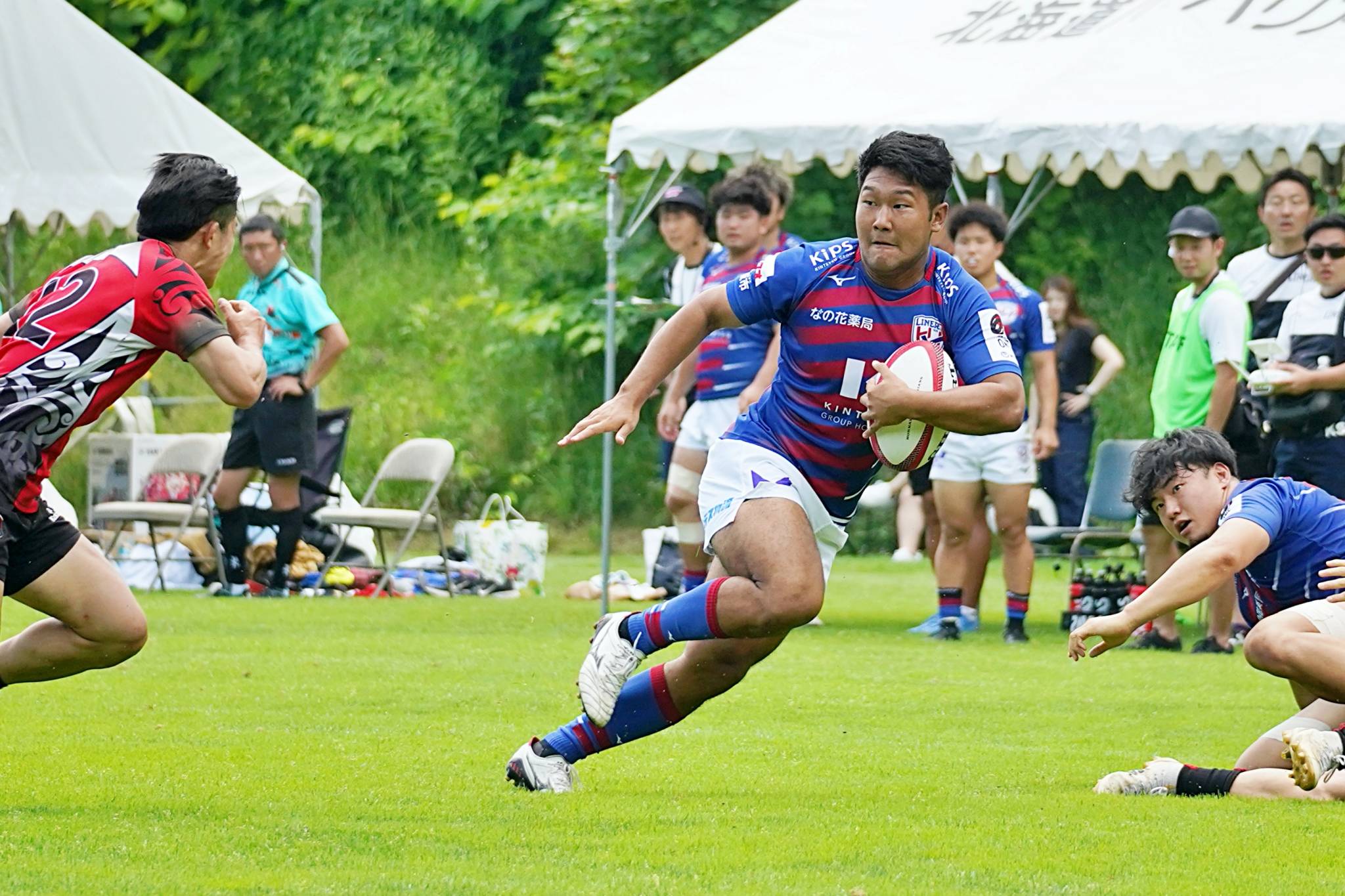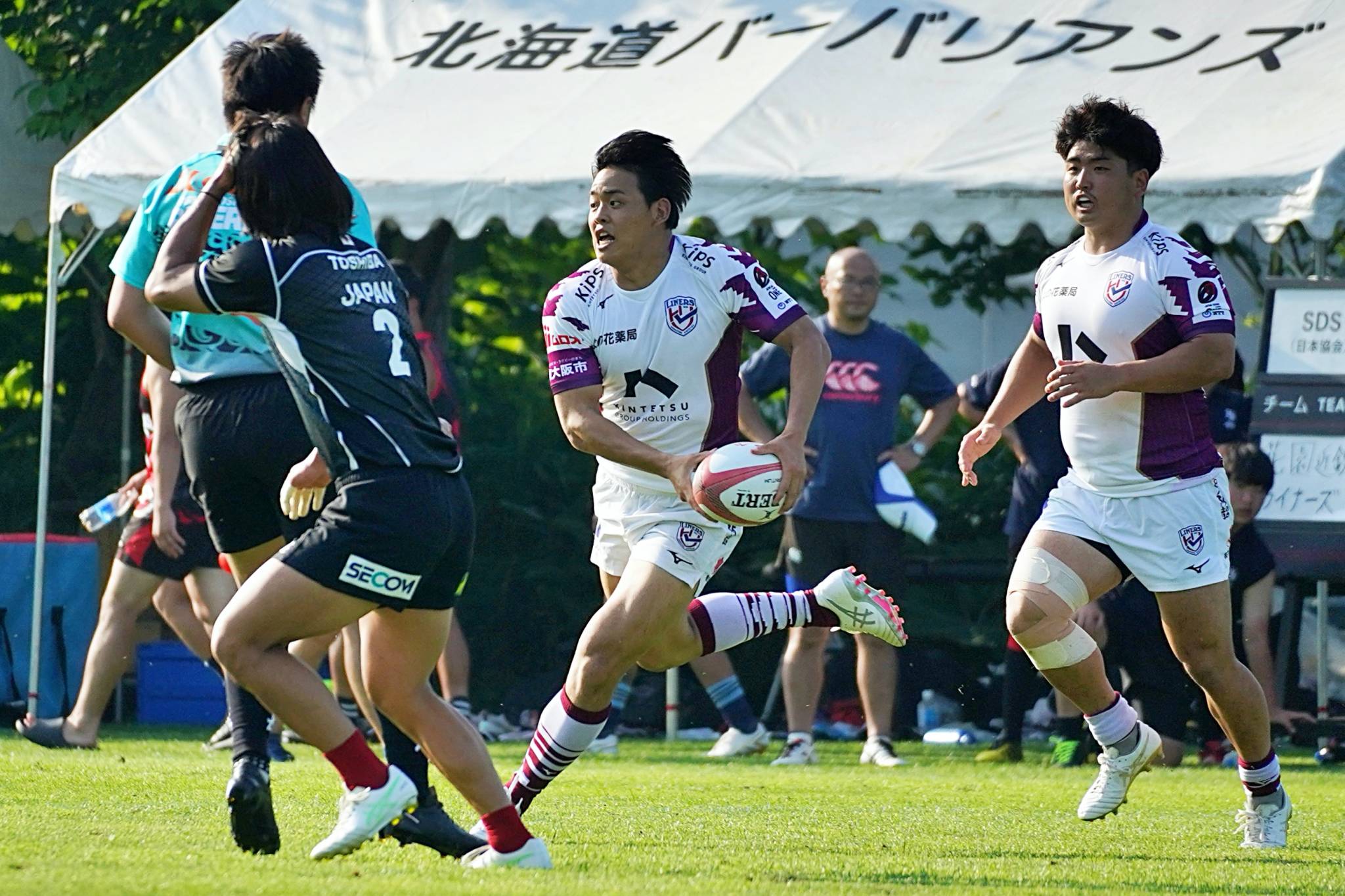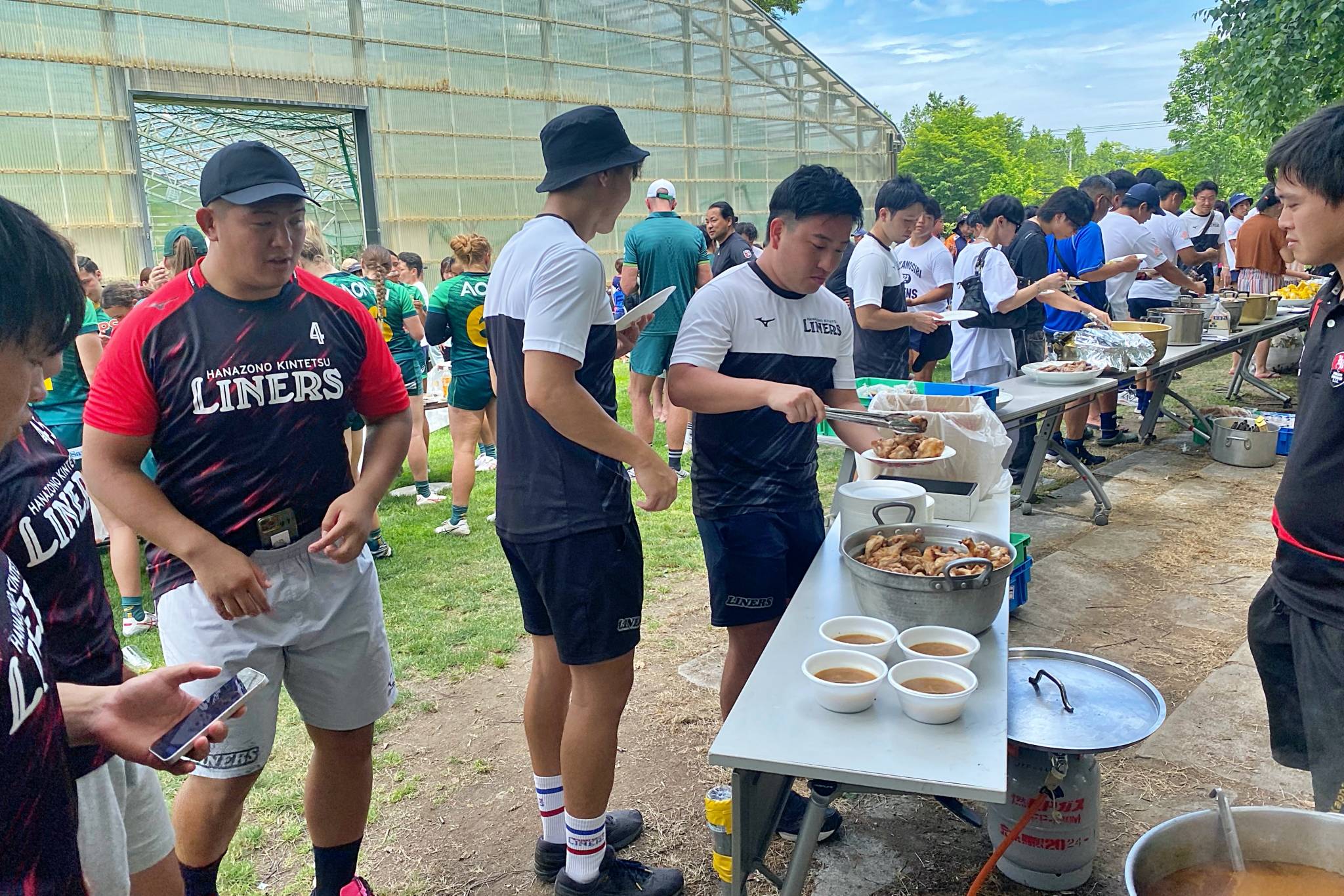 7月8日(土)・9日(日)、ライナーズのトップパートナーである「なの花薬局」様のご招待により、北海道バーバリアンズ定山渓グラウンドにて開催された「第10回北海道バーバリアンズセブンズトーナメント大会」に参加しました。