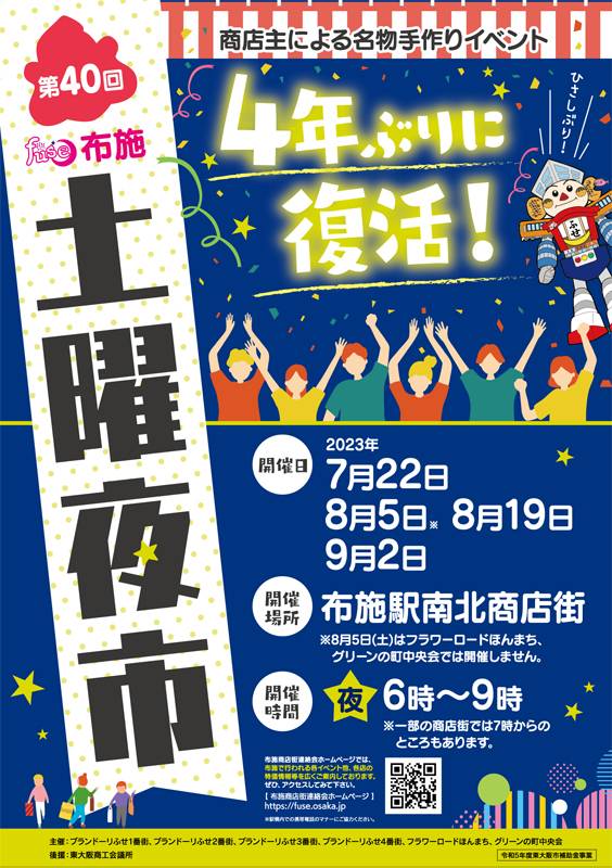 8月19日(土)、東大阪・布施の商店街にて開催される「第40回布施土曜夜市」でラグビー体験&缶バッジ作り体験を実施します。選手も登場しますのでぜひお越しください。