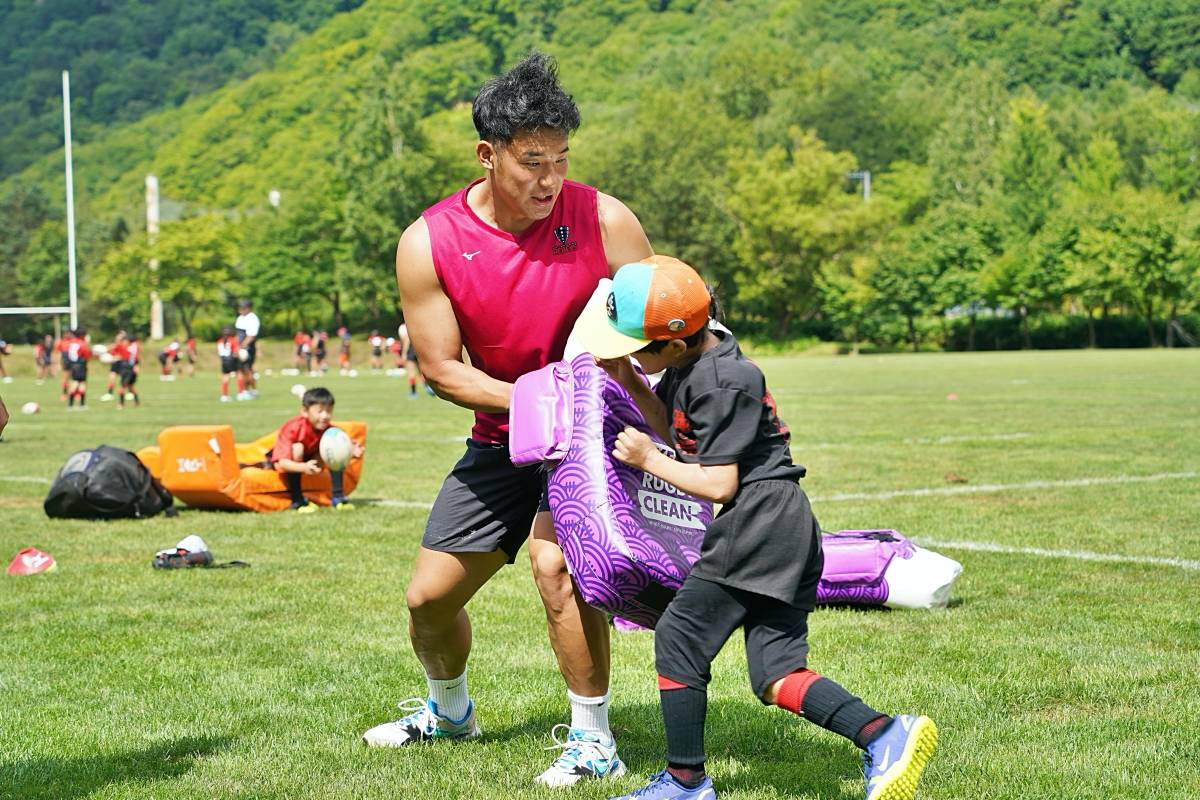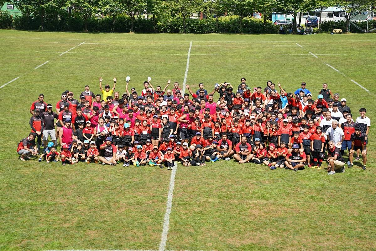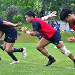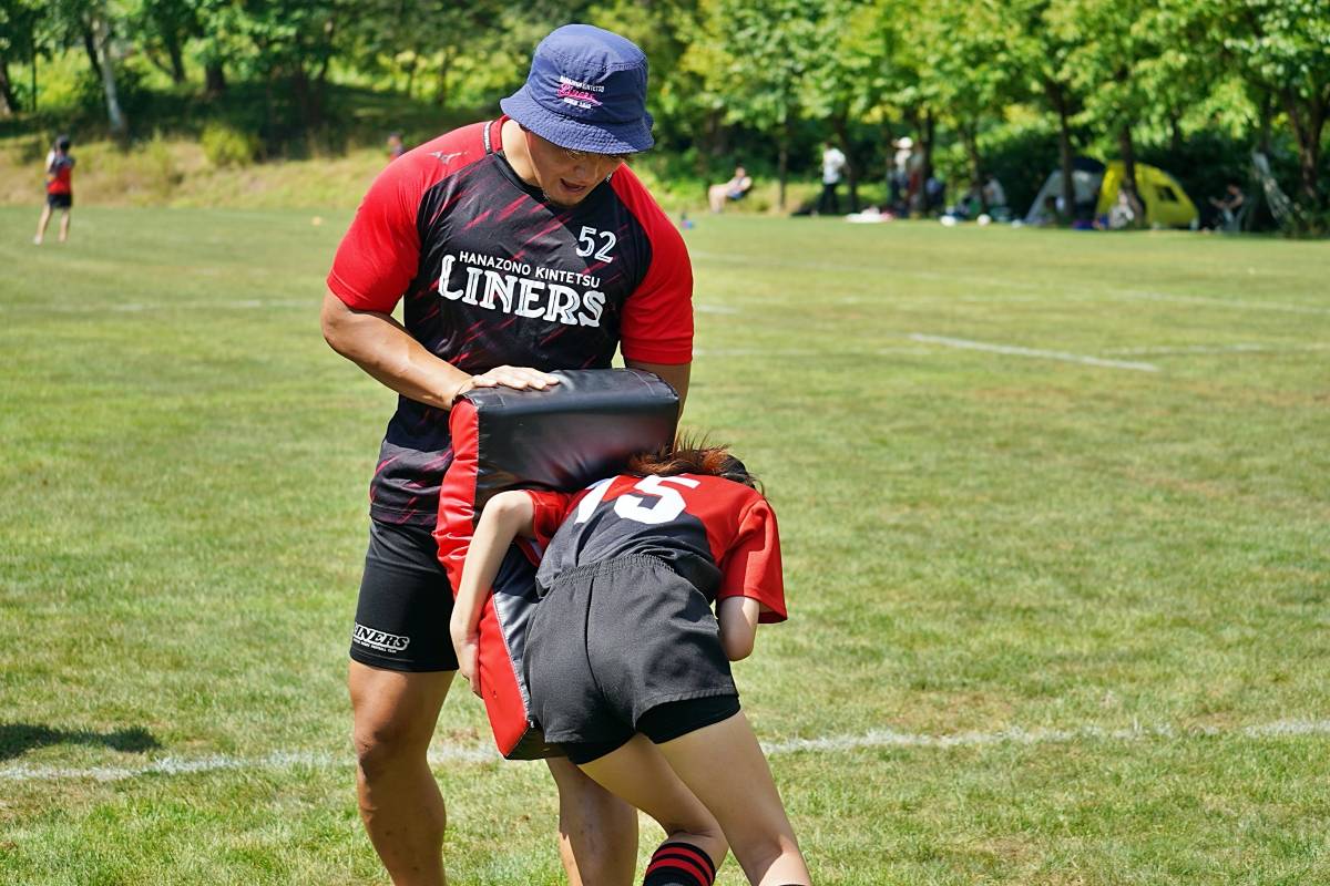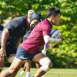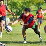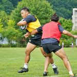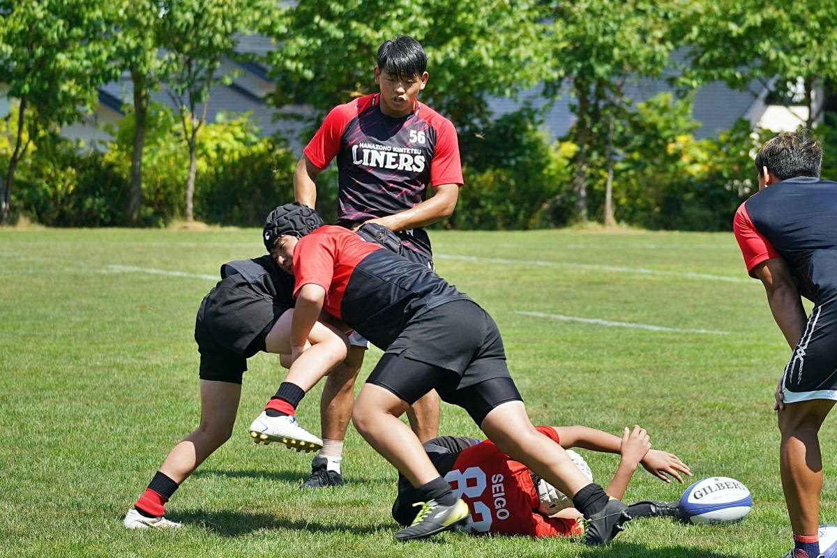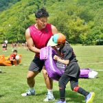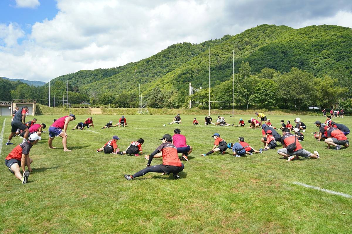 4日目の8/26(土)はラグビークリニックを実施。グループに分かれて、北海道バーバリアンズジュニアのみなさんを中心に、北海道でラグビーをしている小中学生へラグビー指導を行いました。