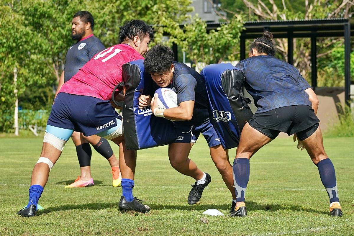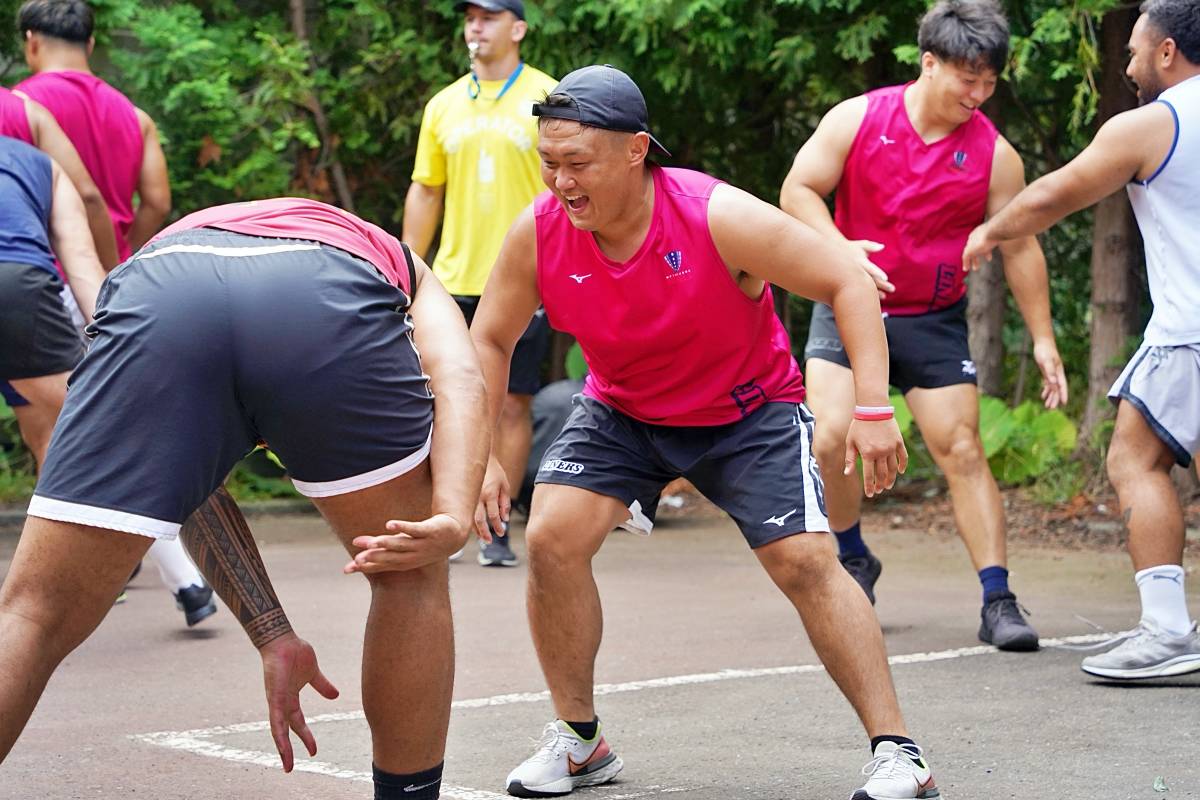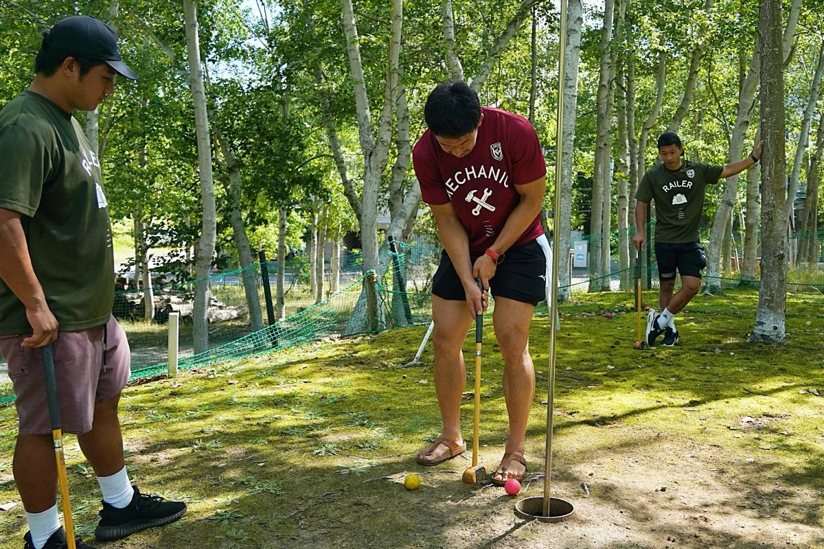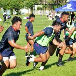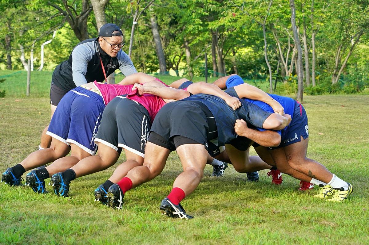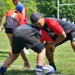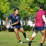 4日目の8/26(土)はラグビークリニックを実施。グループに分かれて、北海道バーバリアンズジュニアのみなさんを中心に、北海道でラグビーをしている小中学生へラグビー指導を行いました。
