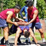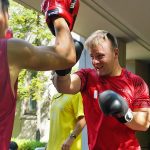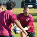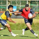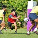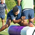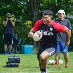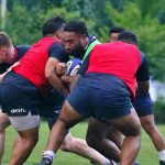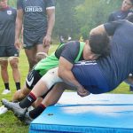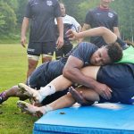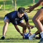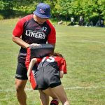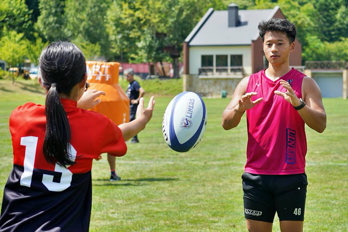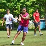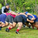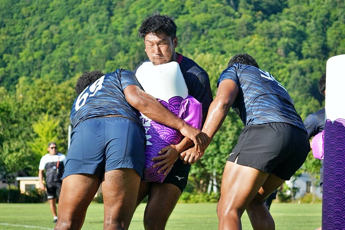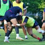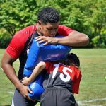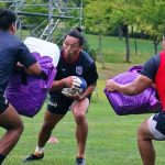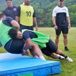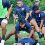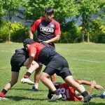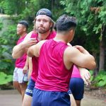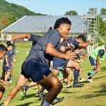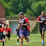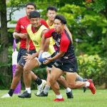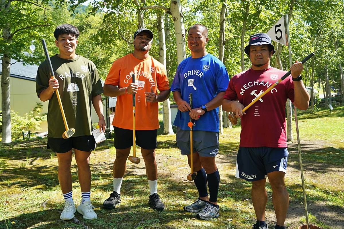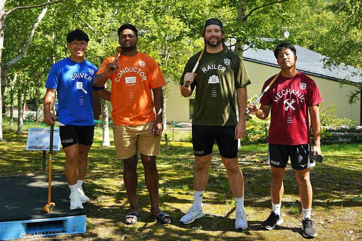 4日目の8/26(土)はラグビークリニックを実施。グループに分かれて、北海道バーバリアンズジュニアのみなさんを中心に、北海道でラグビーをしている小中学生へラグビー指導を行いました。