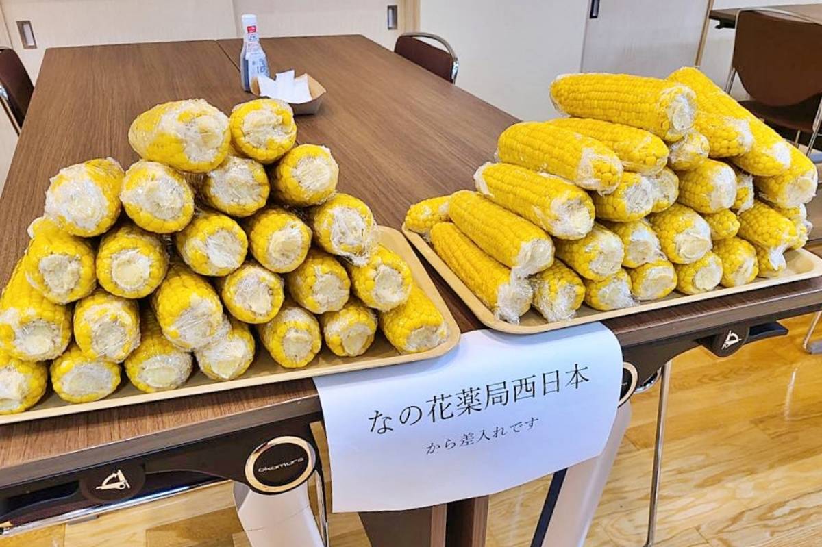 また合宿中に、トップパートナーの「なの花西日本」様より、とうもろこしの差し入れもいただきました。