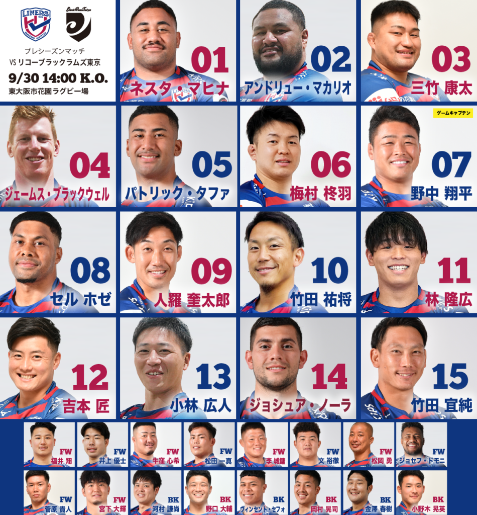 来る9月30日(土)14時00分キックオフのリコーブラックラムズ東京戦のご案内をいたします。