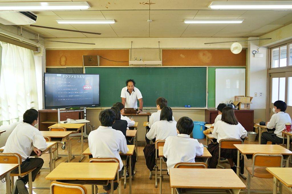 2023年10月11日(水)、東大阪市立義務教育学校池島学園後期課程(中学校)にて「ライナーズスクラム事業」を実施。タウファ統悦普及担当が職業講話を行いました。