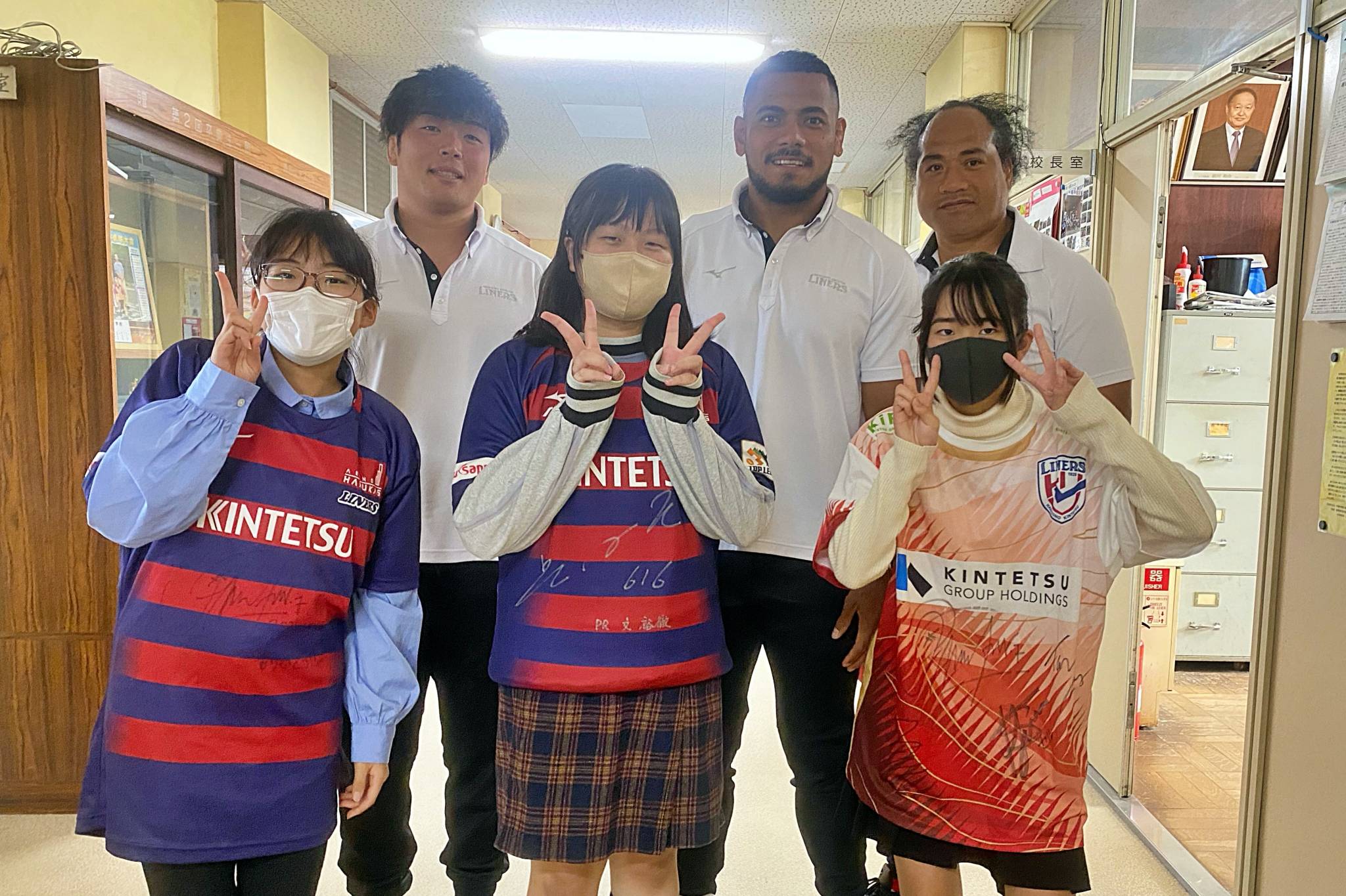 2023年10月18日(水)、奈良市立平城中学校にて「ライナーズ絆プロジェクト」を実施。タウファ統悦普及担当、横井隼選手、ツポウ テビタ選手が職業講話を行いました。