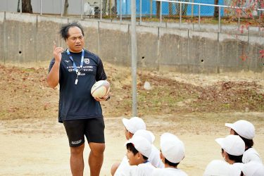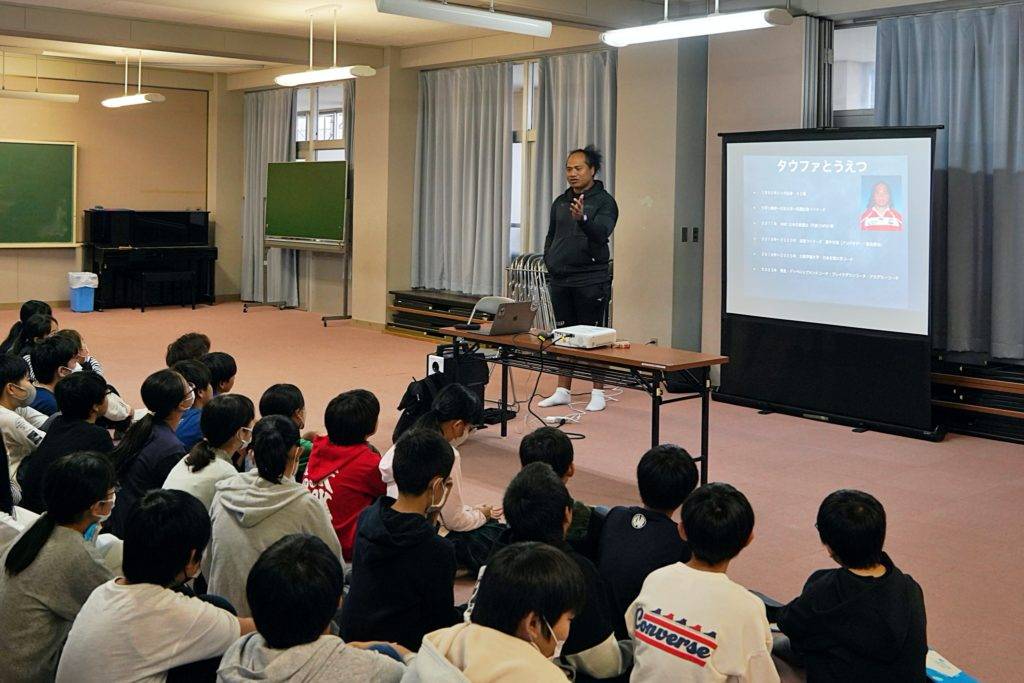 2023年11月6日(月)、堺市立新檜尾台小学校にて「トップアスリート小学校ふれあい事業」を実施。タウファ統悦普及担当が6年生に職業講話とラグビー体験を行いました。