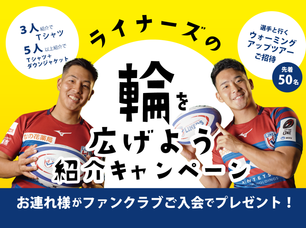 試合当日、ライナーズファンクラブ会員様のご紹介で新規入会いただきますと、会員様・新規入会者様に特典をプレゼント!