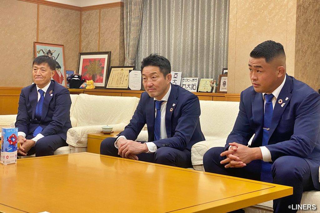 ライナーズからは飯泉景弘ゼネラルマネージャー、向井昭吾ヘッドコーチ、野中翔平キャプテンの3名が出席。