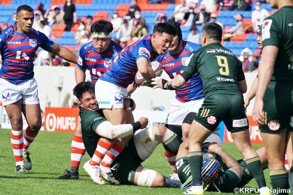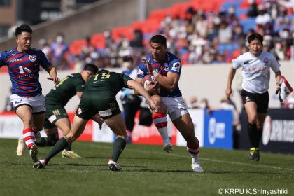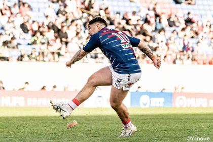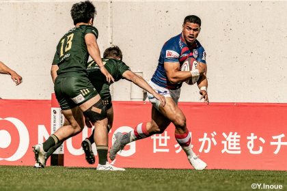 ライナーズは相手ゴール前に迫る場面があるものの、トライにまで至ることができません。