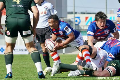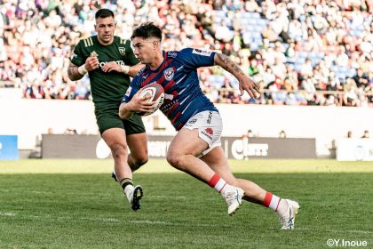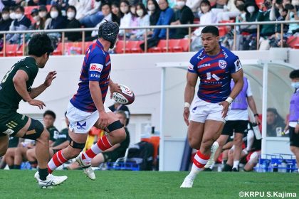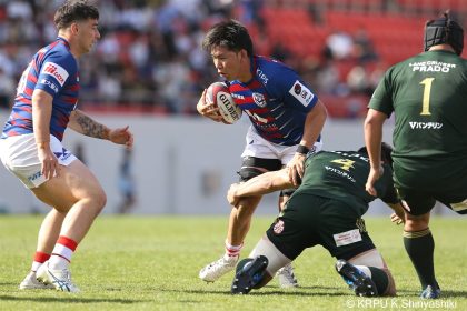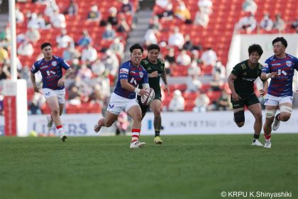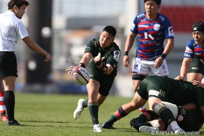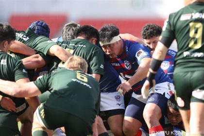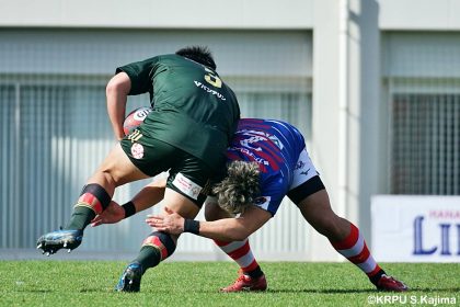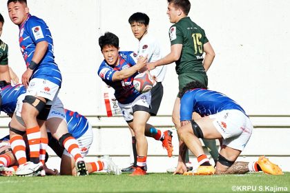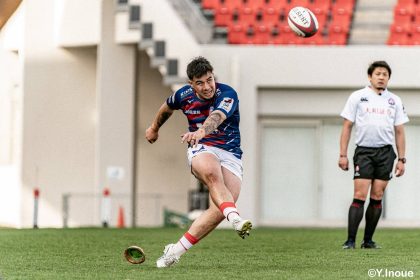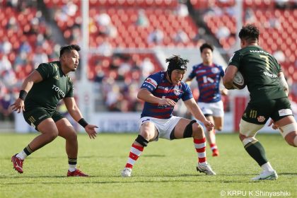 これを機に流れはヴェルブリッツに。さらにビッグゲインからトライを重ねられ、3-14とリードを許します。