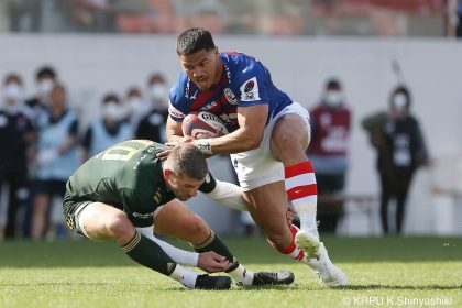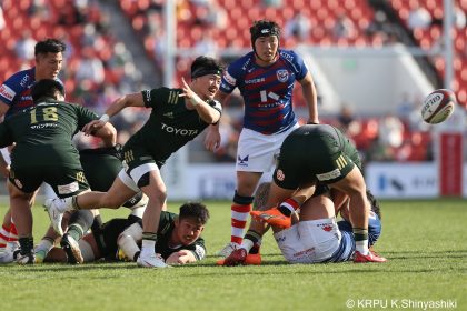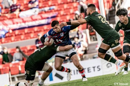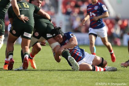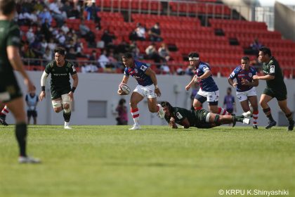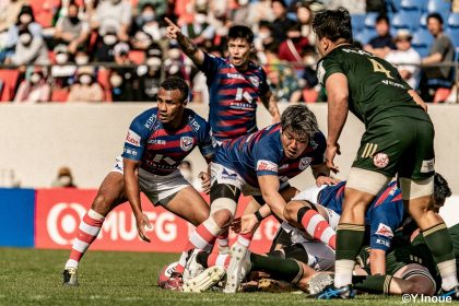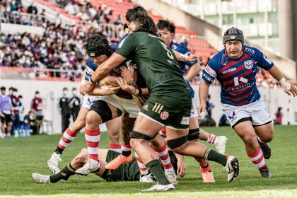 ここから盛り返したいところでしたが、ブレイクダウンでのセットの遅れから相手の前進を許し残り15分で3トライを奪われ、24-62と大きく離される結果となりました。