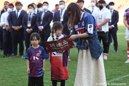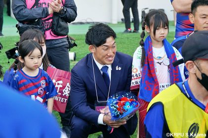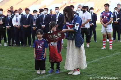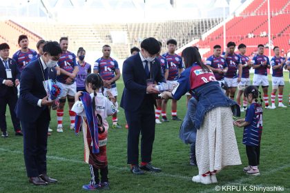 なお試合後には、「スマイルマッチ」のセレモニーが行われ、ドナルド・マクドナルド・ハウスを利用する家族からライナーズへメッセージとプレゼントが贈られました。