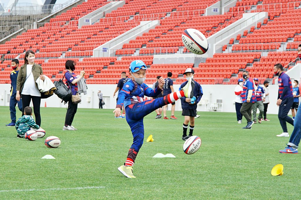 ※ラグビー体験に参加される方は、動きやすい服装と運動靴でお越しください。革靴やピンヒール等の芝生を傷めるような履き物ではグラウンド内に立ち入ることができませんのでご注意ください。