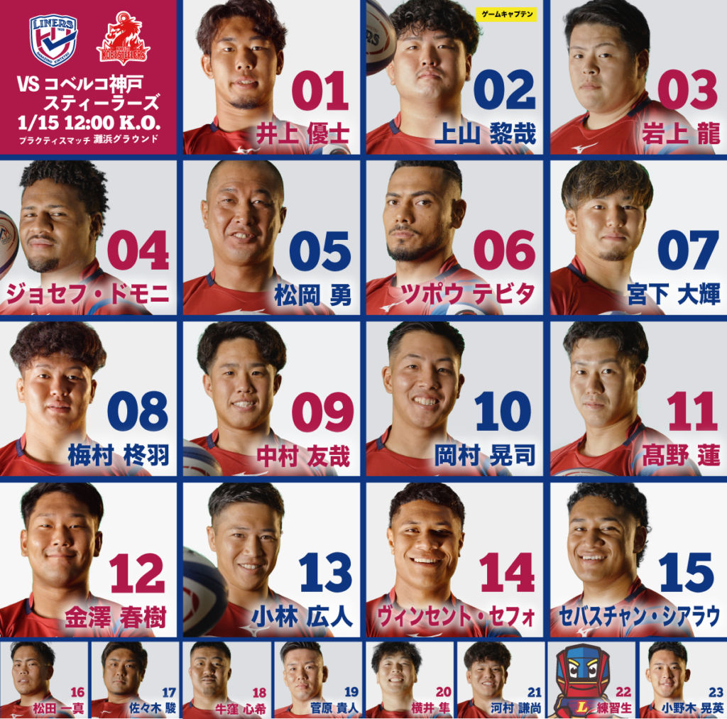 1月15日(月)12:00 K.O. vsコベルコ神戸スティーラーズ