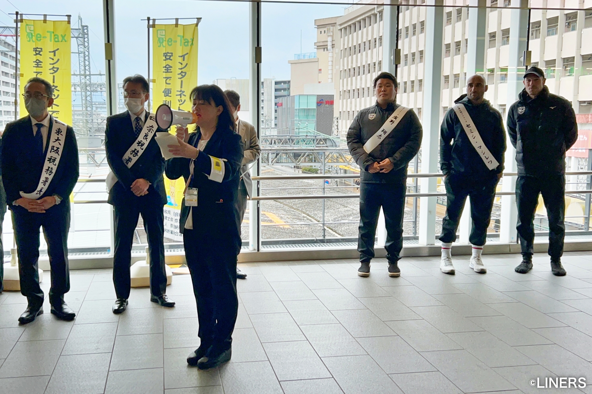 1月11日(木)、花園近鉄ライナーズは大和西大寺駅にて奈良税務署・東大阪税務署が実施するスマホ申告とキャッシュレス納付の啓発活動に参加しました。