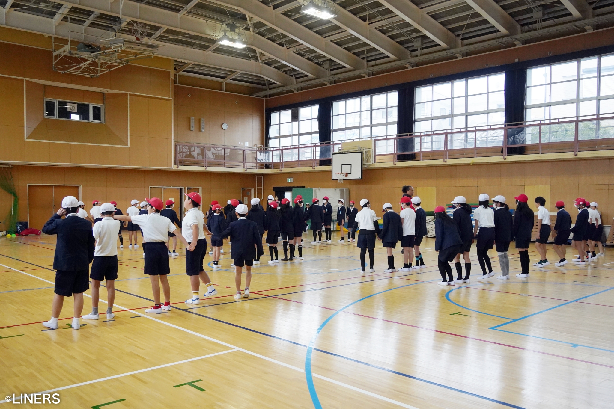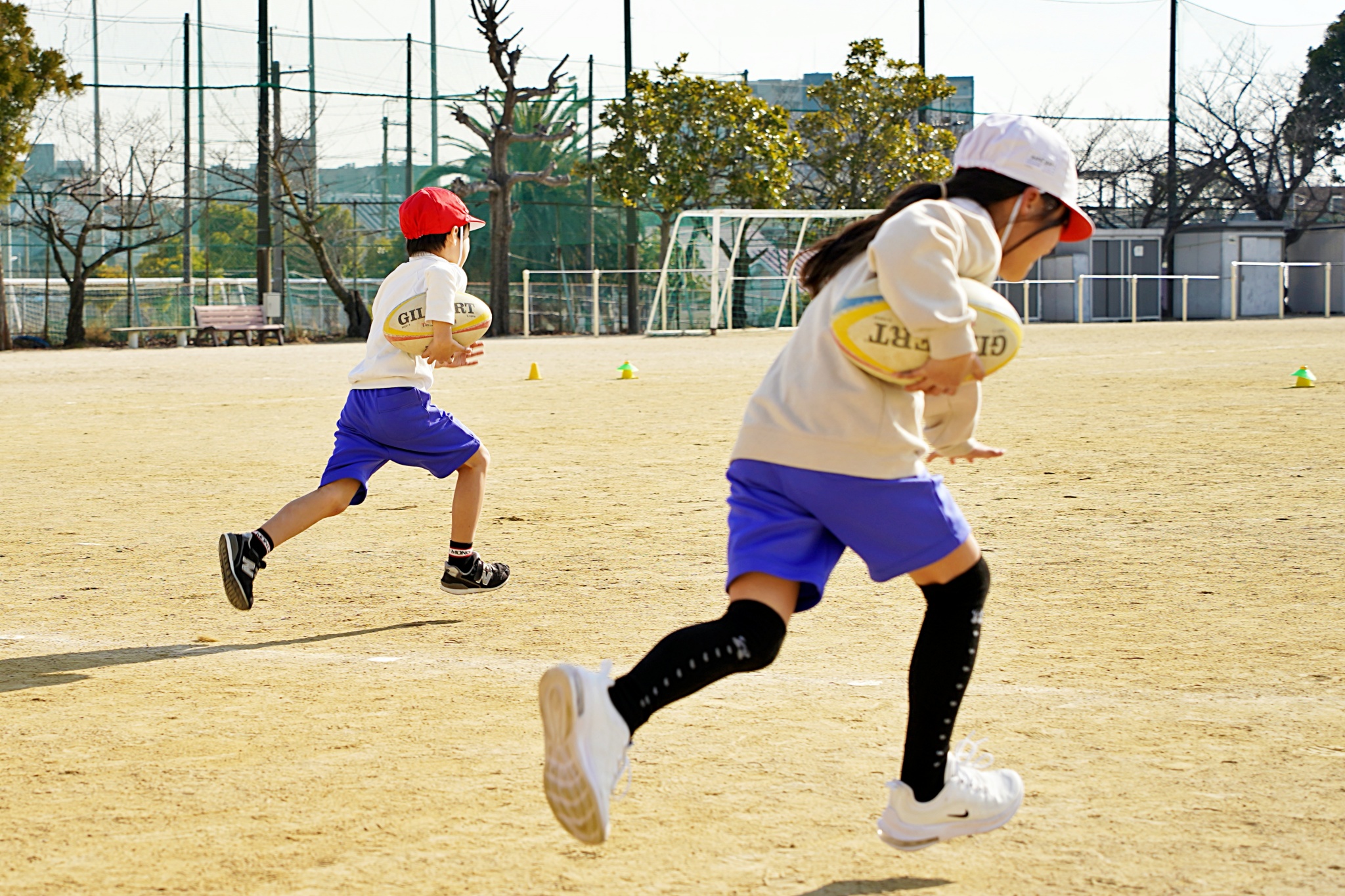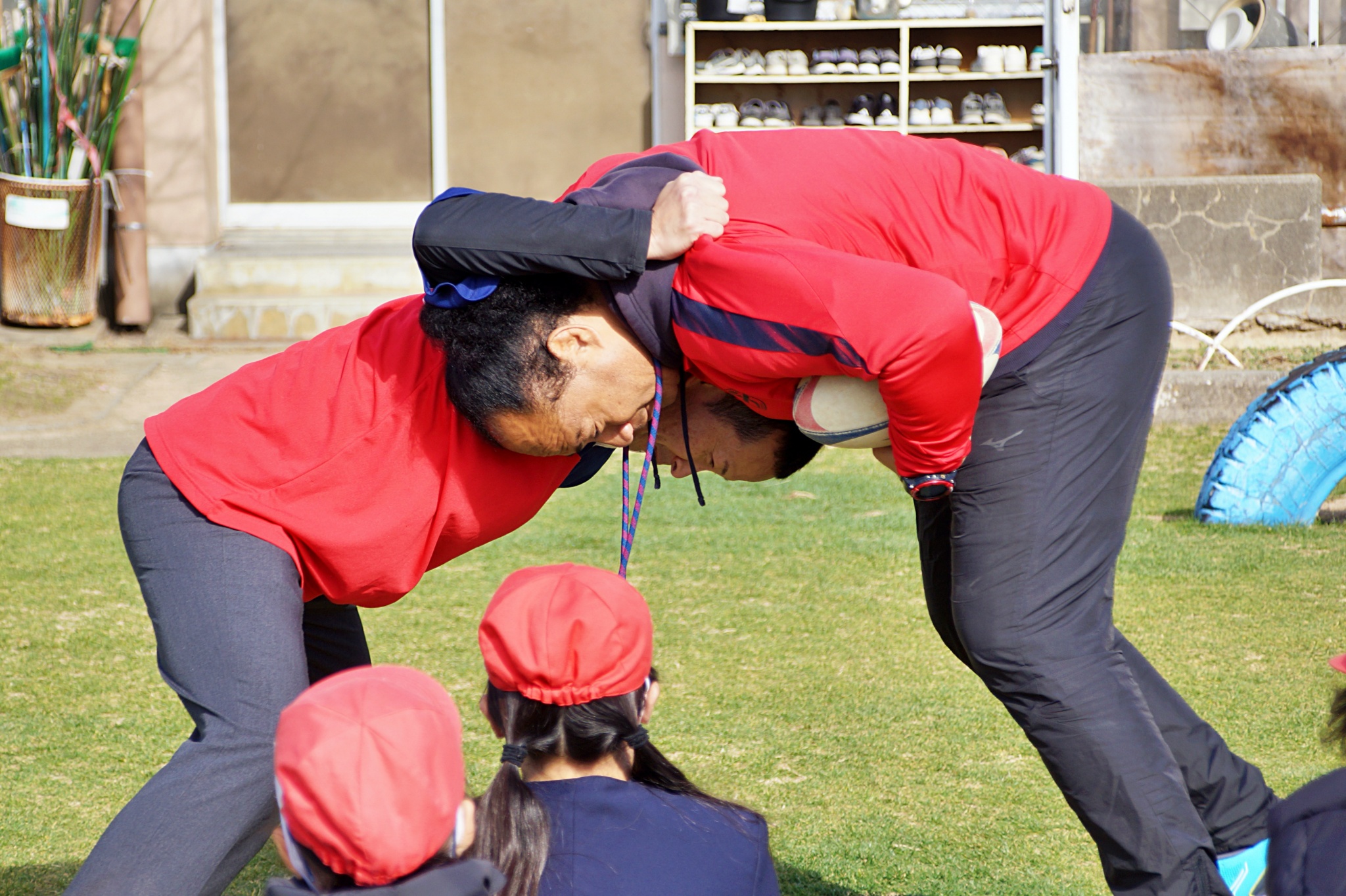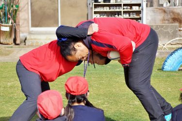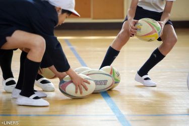 「One Team」をテーマに、楕円球の扱いの難しさに苦戦しながらもみんなで協力して取り組んでくれました。